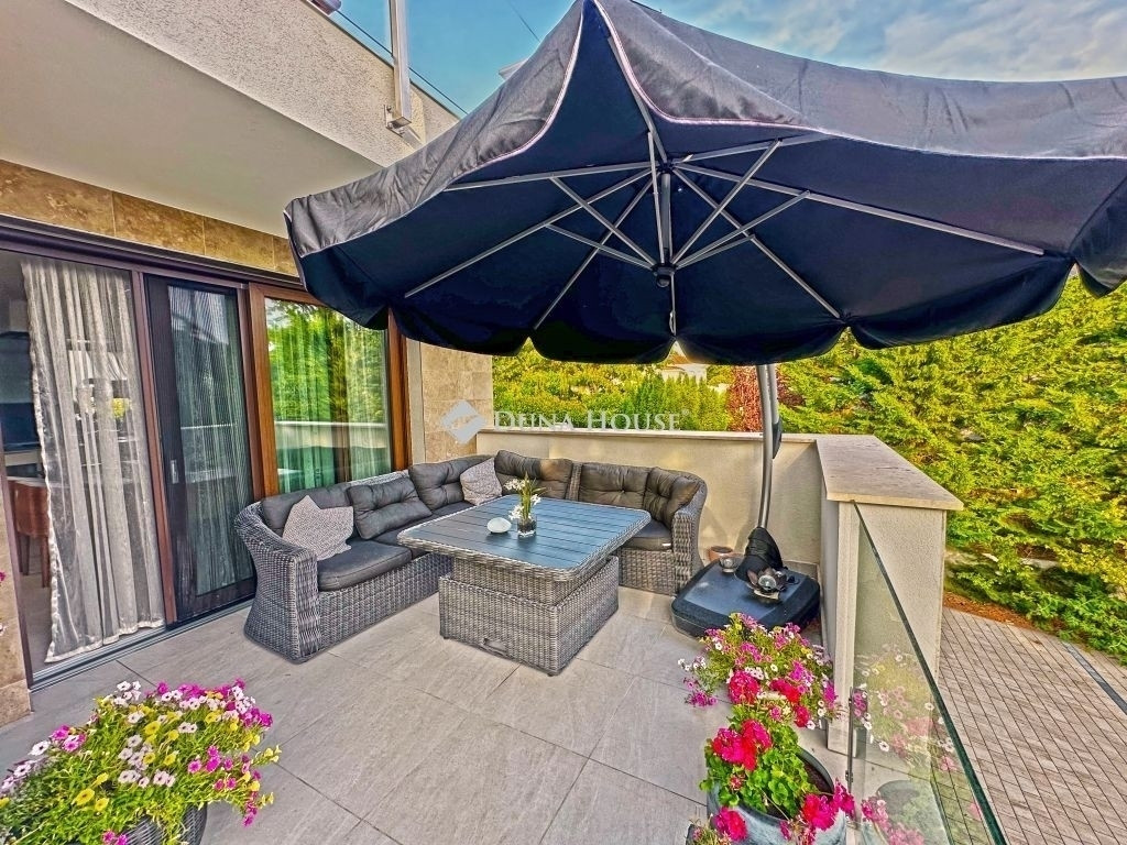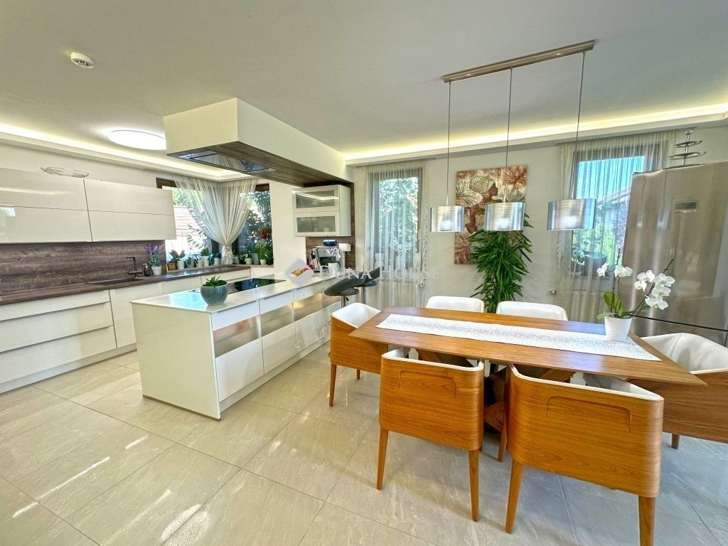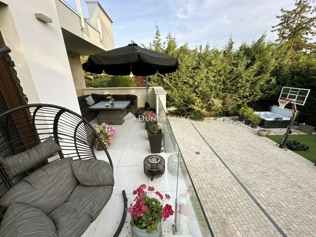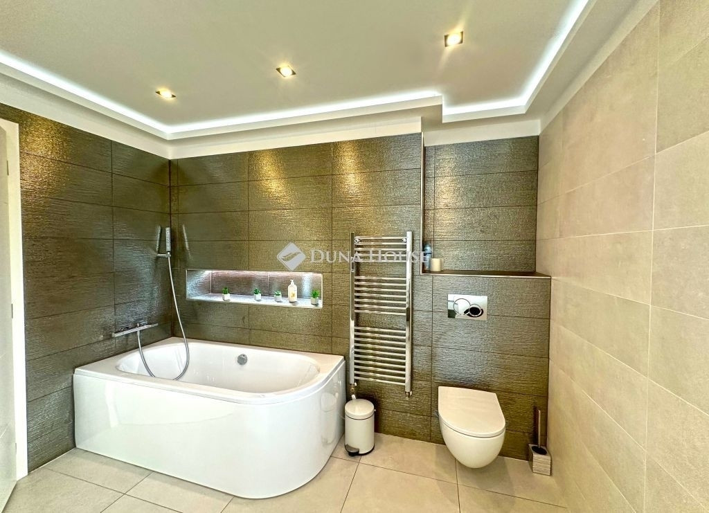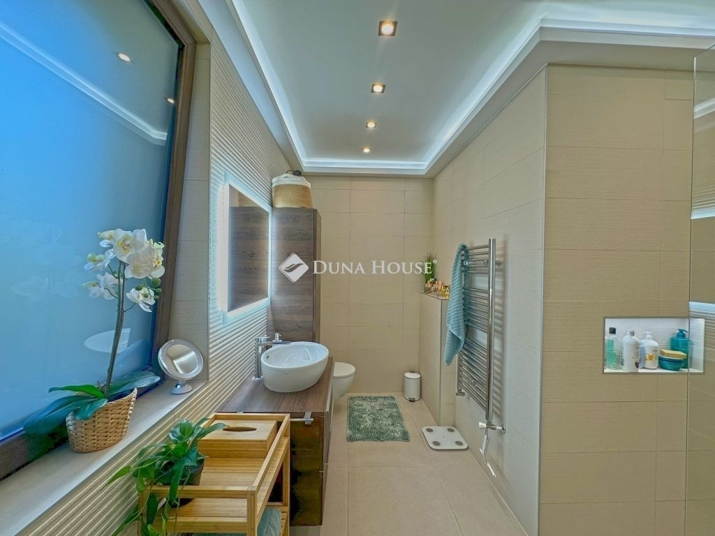 A prémium életérzést a 75 m²-es, üvegkorlátos körpanorámás terasz, jakuzzi, padlófűtés, 5 inverteres klímaberendezés, elektromos redőnyök, fűtött gépkocsi-beálló, valamint a kétállásos garázs biztosítja. A biztonságról riasztó- és 360 fokos kamerarendszer gondoskodik.