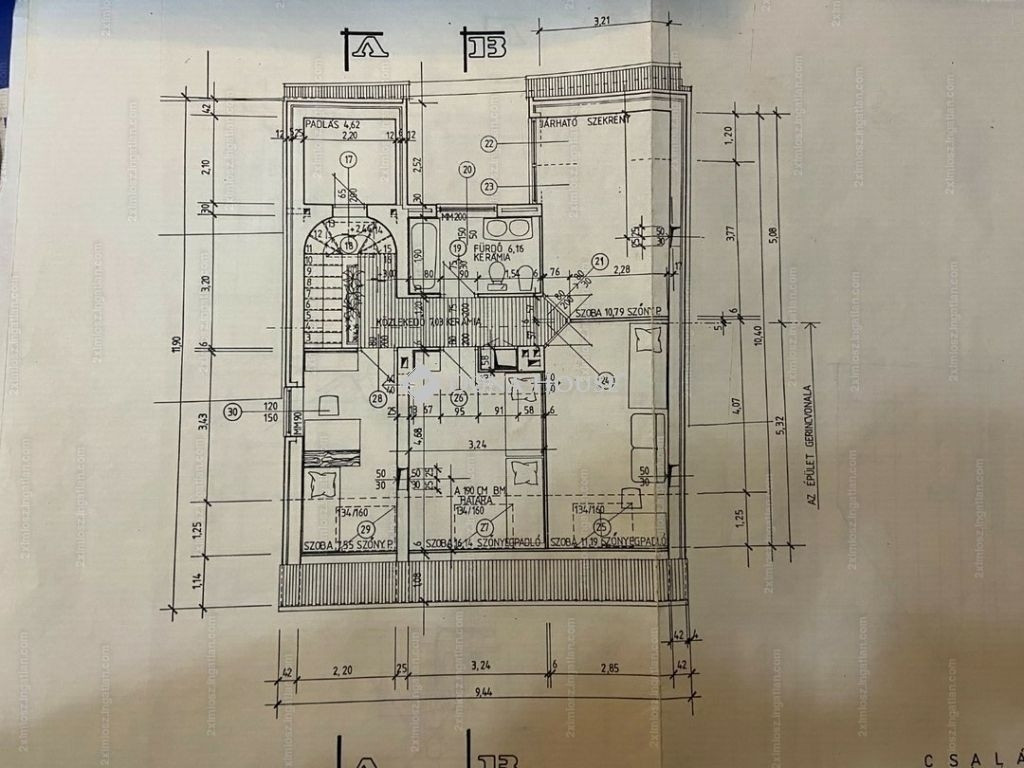 B-épület: 157 m²-es, téglaépítésű, 1987-ben épült, kétszintes ház: nappali, 5 szoba, étkező, konyha, 2 fürdőszoba, gardrób, közlekedő.