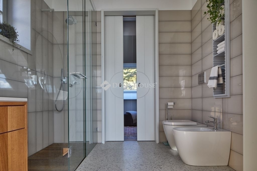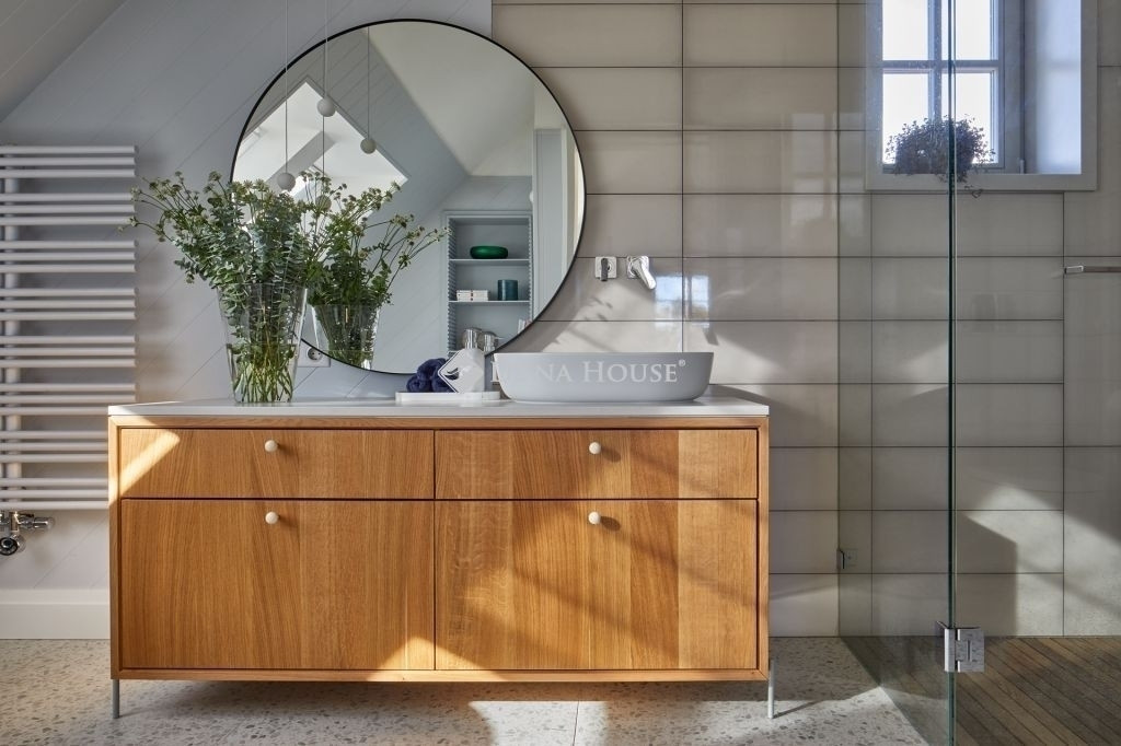 A burkolatok, szaniterek és fa nyílászárók magas minőséget képviselnek.
