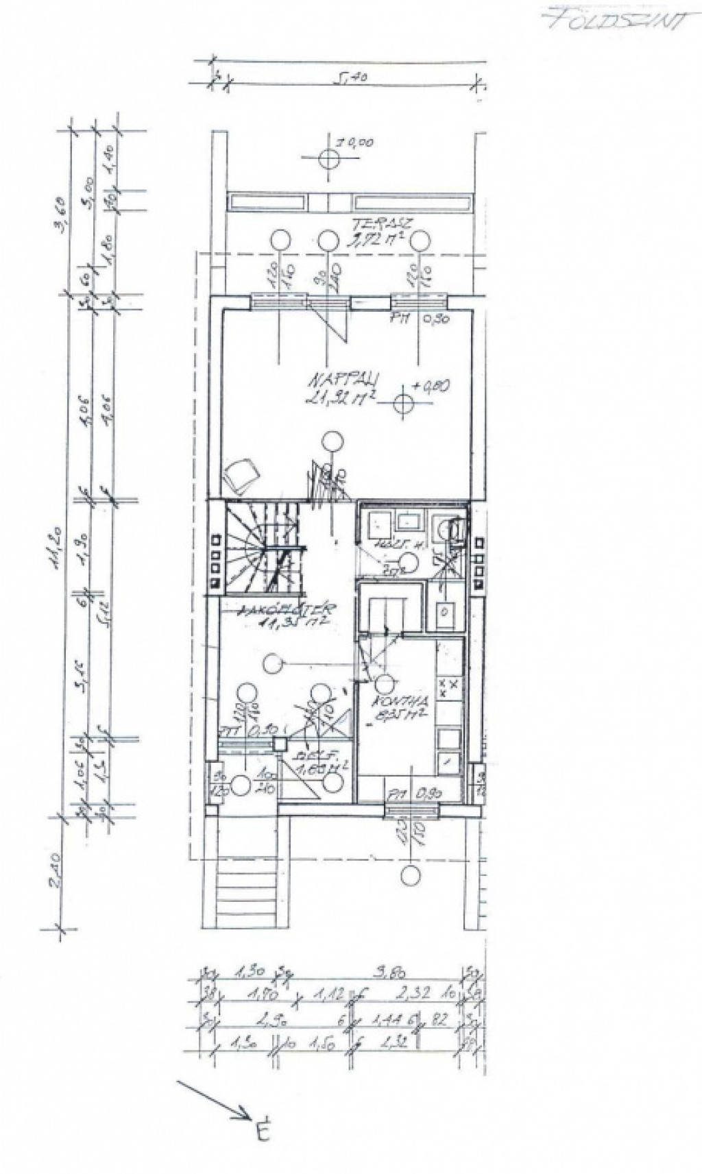 Az 50 nm-es földszinten helyezkedik el a barátságos, napfényes nappali a 10 nm-es rendkívül kellemes terasszal és kertkapcsolattal, a konyha, kamra, külön étkező, a mosókonyha és wc.