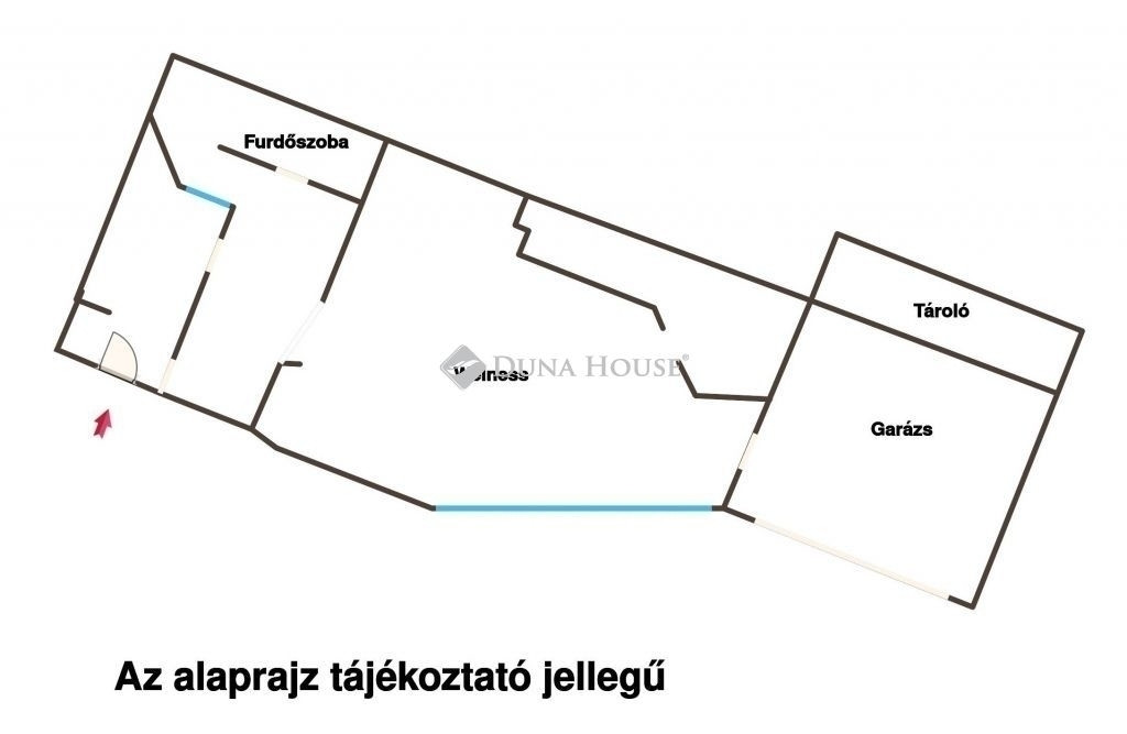 A ház alatt kényelmes kétállásos garázs biztosítja a parkolási lehetőséget.