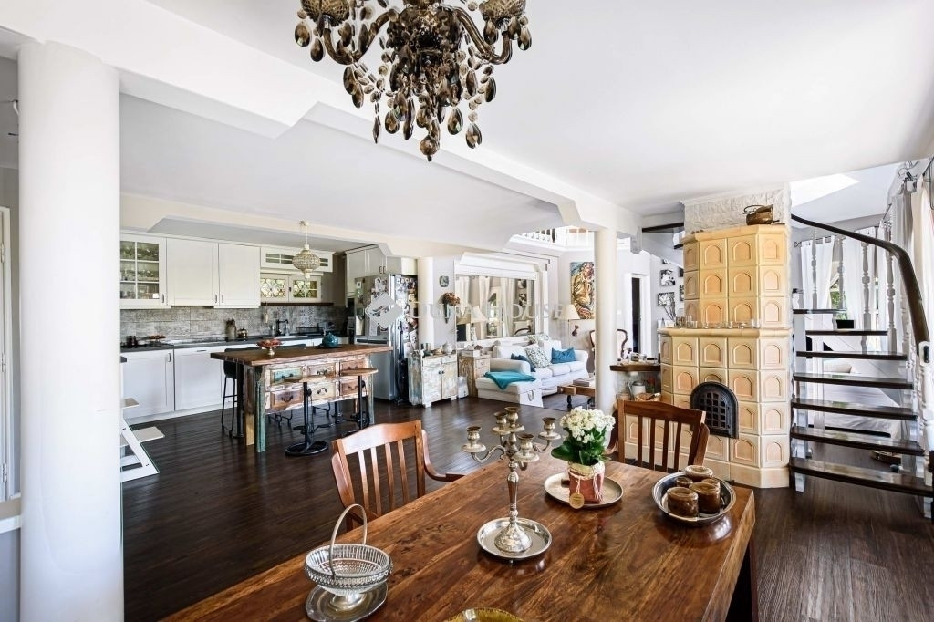A ház enteriőrjének eklektikus eleganciáját egyedi tervezésű bútorok és gondosan válogatott prémium márkák képviselik.