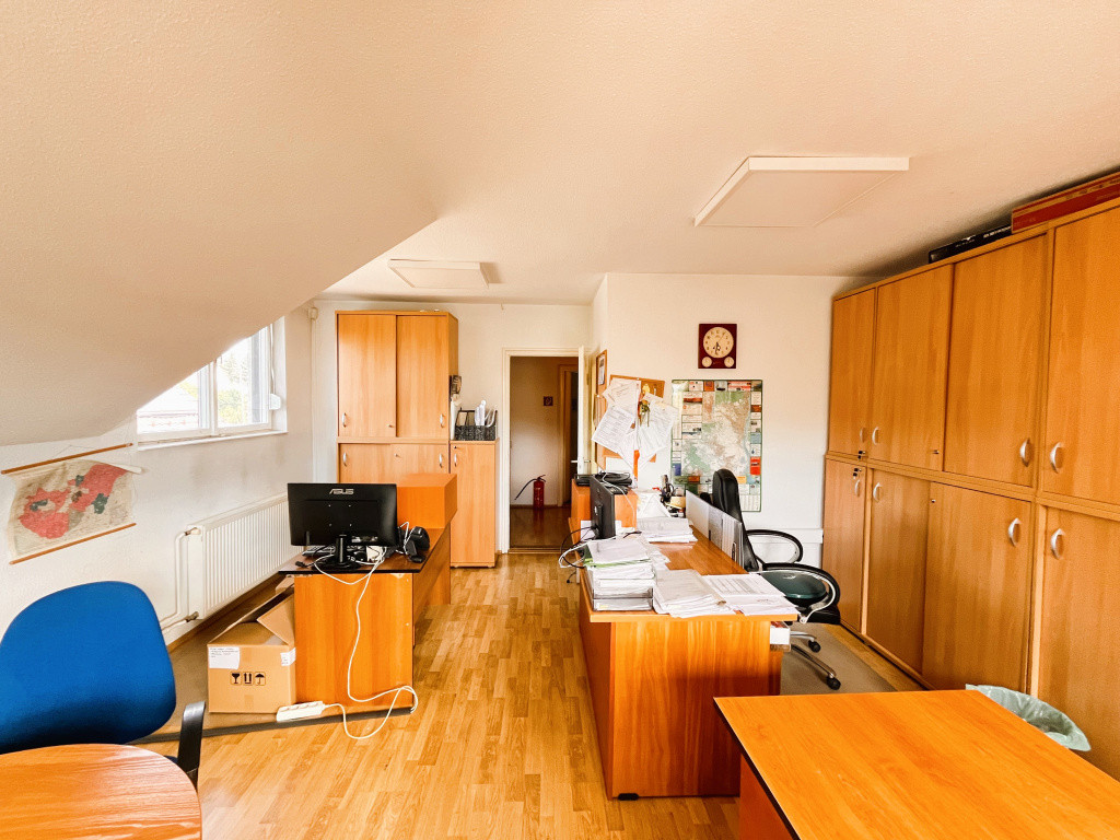 • Felső szint: további irodák/szobák és fürdőszoba.