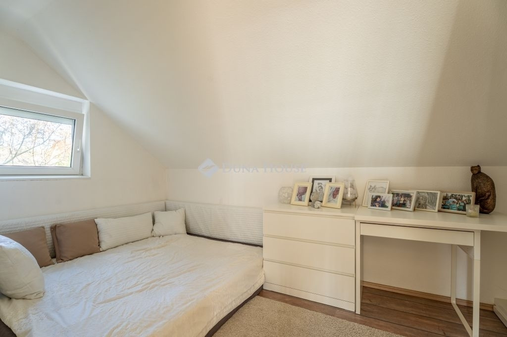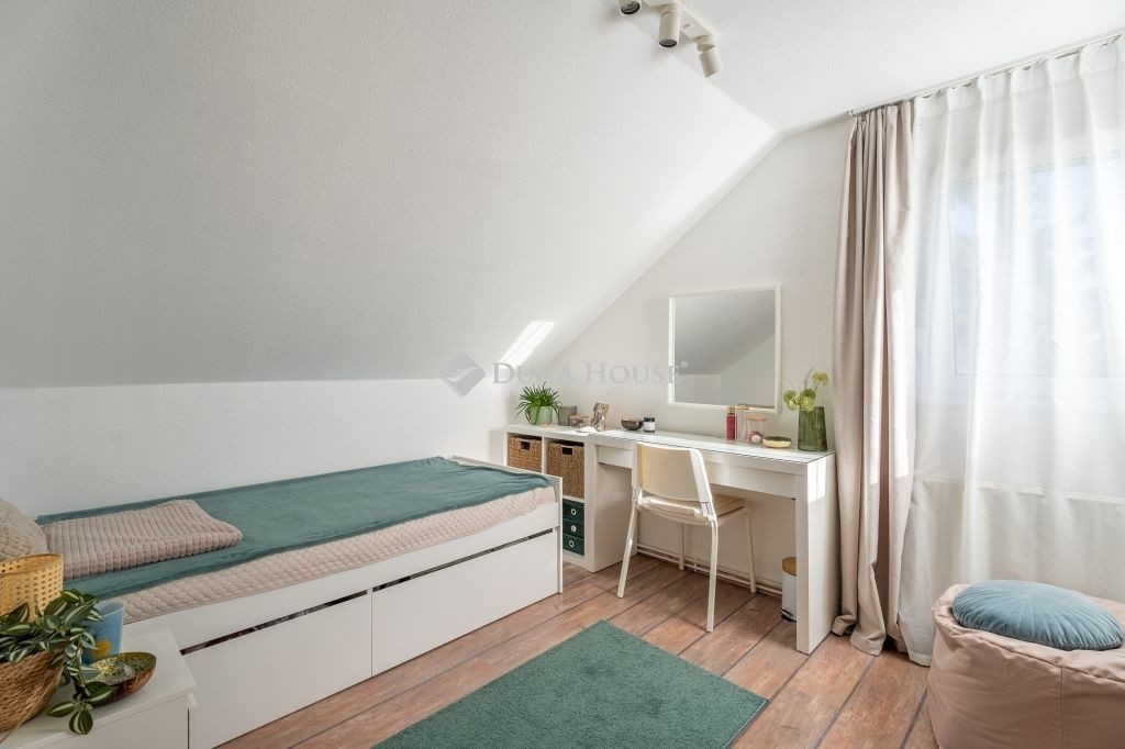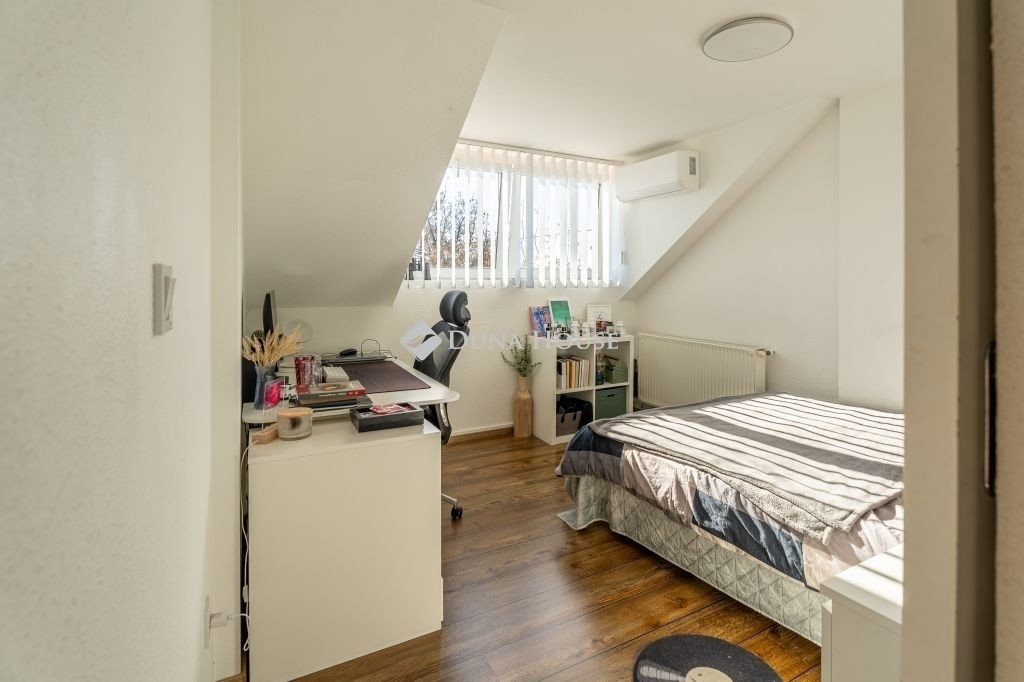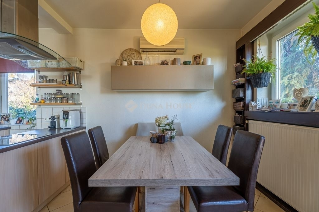 Szentendrén, csendes zsákutcában felújított családi ház intim, 540 m2-es teleken!Szentendre egyik legnyugodtabb, zöldövezeti részén eladó ez a 2000-es években épült belterületbe tartozó, 125 m²-es családi ház, amely igényesen karbantartott, műszakilag felújított állapotban várja új tulajdonosát.A házban tágas, napfényes közösségi tér, modern, gépesített konyha és négy szoba (három az emeleten, egy a földszinten) + nappali található . Az otthon melegéről gázkazán gondoskodik, klímák segítik a hűtést-fűtést.Az ingatlan szerkezetileg masszív: a tetőszerkezet teljesen megújult gerendák, lécek, cserepek cserélve lettek, a tető kőzetgyapottal szigetelt. A nyílászárók korszerű, háromrétegű műanyag ablakok, a villamos hálózat teljes felújításon esett át.A ház fedett, 30 m²-es terasza kellemes átmenet a nappali és a kert között tökéletes hely reggelihez, esti borozáshoz vagy családi grillezéshez. A gondozott, intim telek elhelyezkedése miatt szinte teljesen elzárt a külvilágtól, a zsákutca forgalomtól mentes, így ideális kisgyerekes családoknak vagy nyugalmat keresőknek.A garázs 20 m²-es, mellette több autó számára is biztosított a parkolás az udvaron.Összességében egy jól megépített, átgondolt, felújított ház, ami csendes, zöld környezetben kínál valódi otthont Szentendrén.Amennyiben felkeltette az érdeklődését, bővebb információval vagy megtekintéssel kapcsolatban készséggel állok a rendelkezésére!