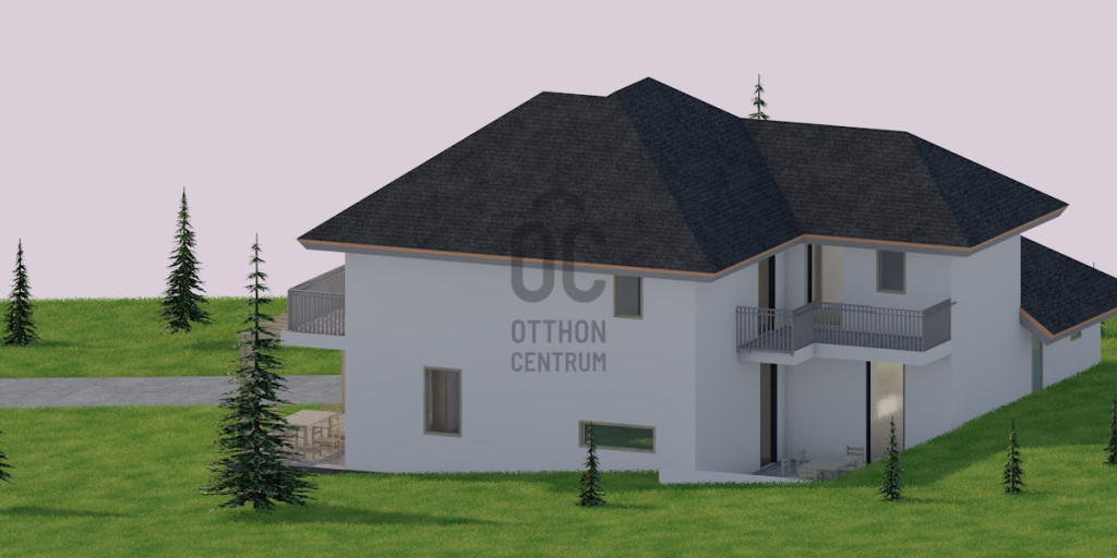 Gyönyörű elvehetetlen panorámás környezetben, könnyen megközelíthető aszfaltozott utcában, minden igényt kielégítő 5 hálószobás modern, alacsony rezsijű családi ház épül.