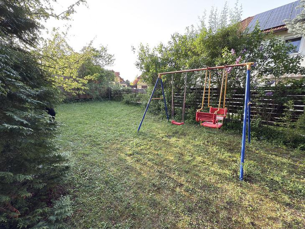 -A házhoz tartozik egy 60 nm-es közös kert, játszótérrel.