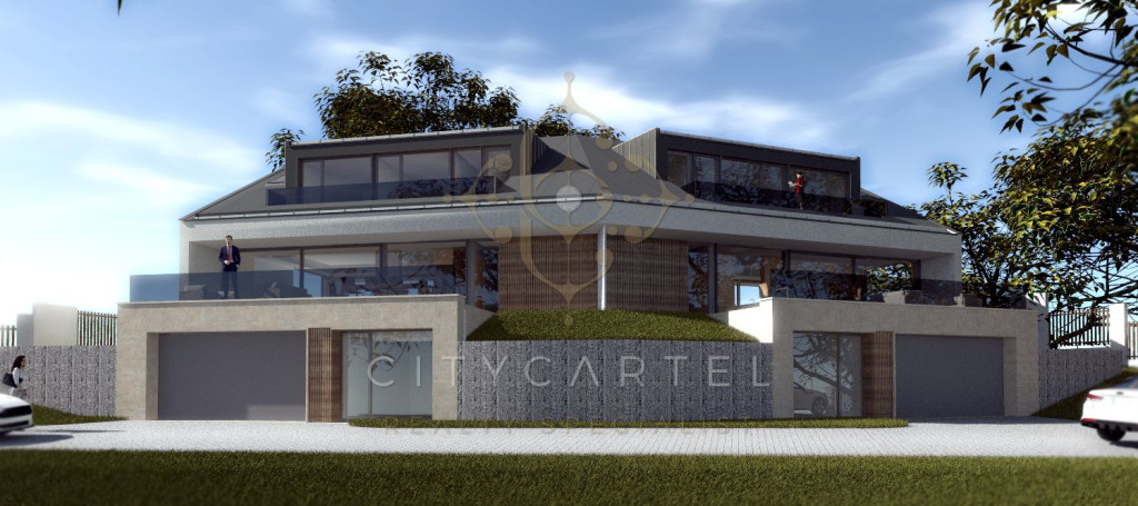 Szentendrén eladó modern stílusú 3 szintes ikervilla mindkét fele.