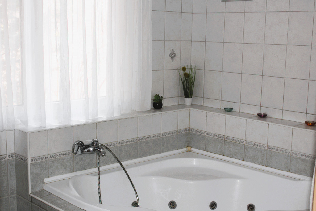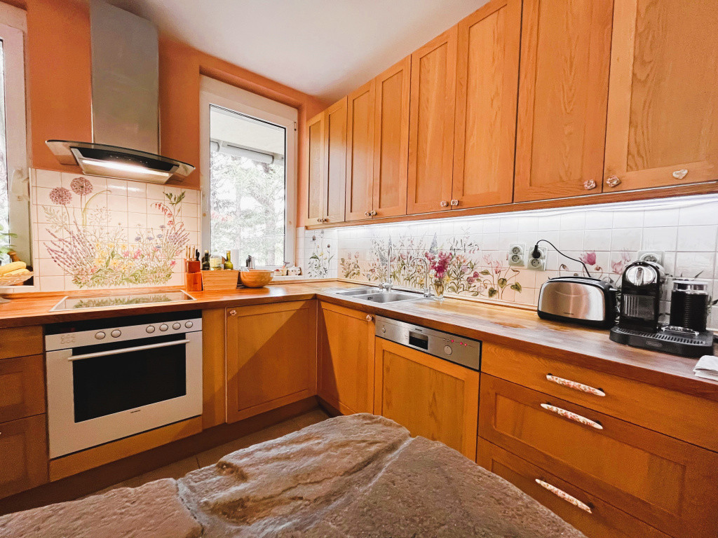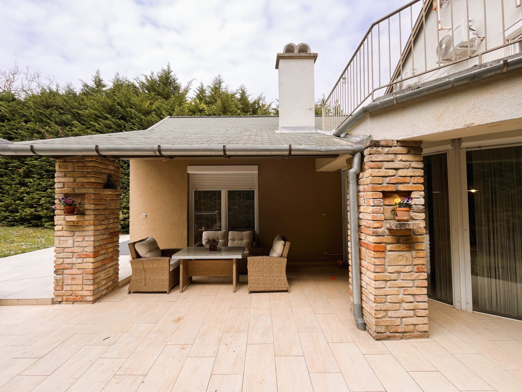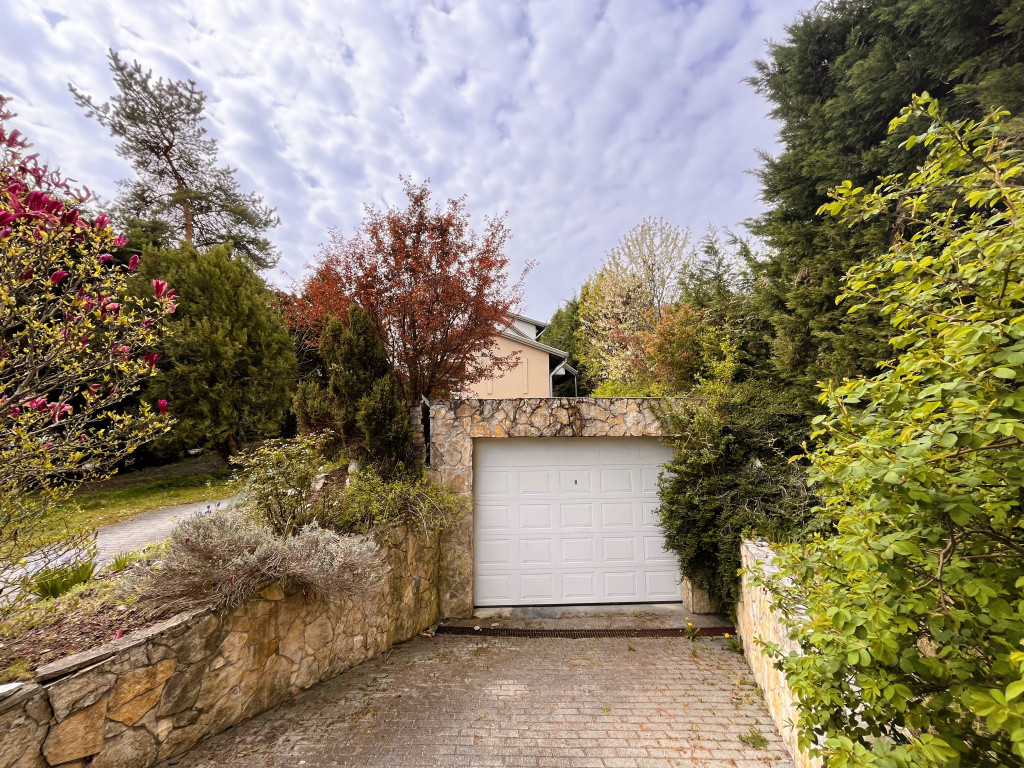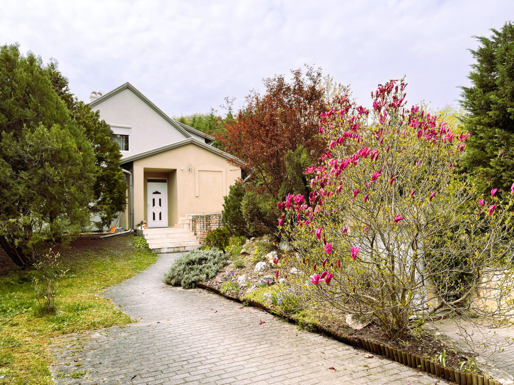 A közel 1100 m²-es, gondosan karbantartott kert teljes intimitást biztosít, magas sövénnyel körülölelve. A telken automata öntözőrendszer, hangulatos sziklakert, valamint egy kényelmes, kétállásos garázs is helyet kapott, fűtött feljáróval és elektromos kapuval kiegészítve.