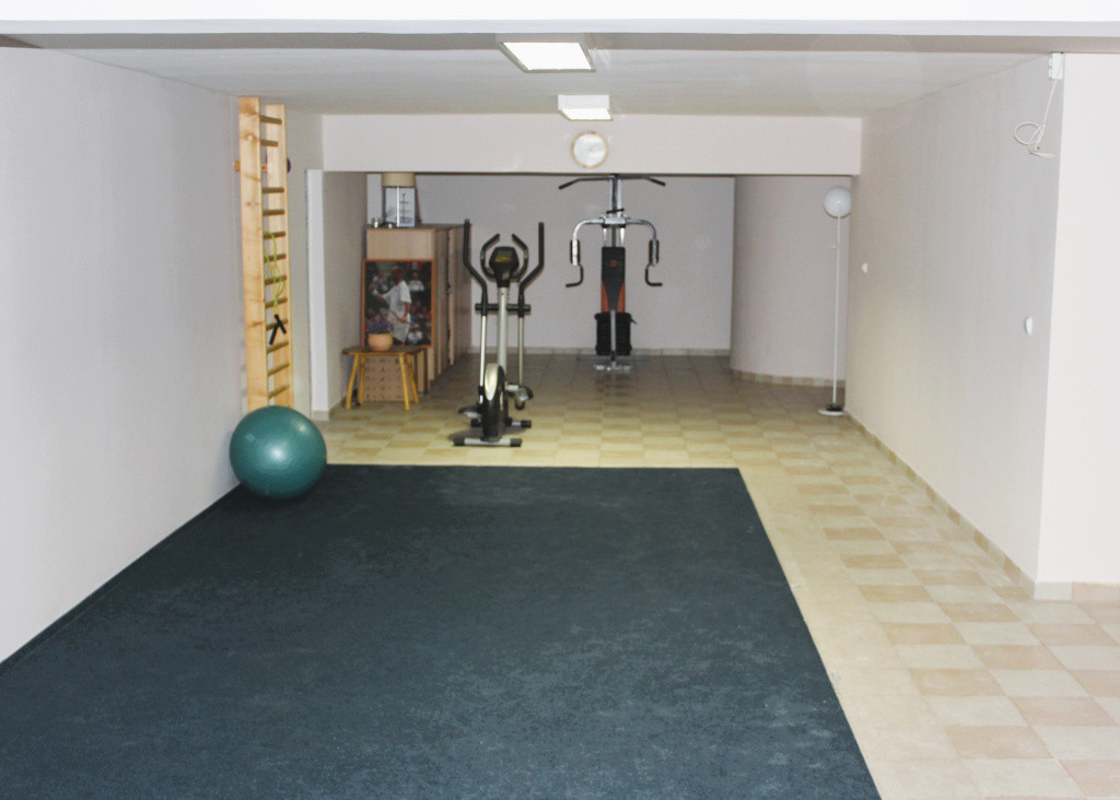 Az alsó szinten, amely közvetlen kapcsolatban áll a kerttel, számos lehetőség rejlik: jelenleg szauna, vizes helyiségek, edzőtér, valamint egy beltéri medence kialakítására alkalmas tér található itt. Ez a szint különösen alkalmas lehet akár szolgáltató tevékenység, iroda vagy egyéb vállalkozás kialakítására is.