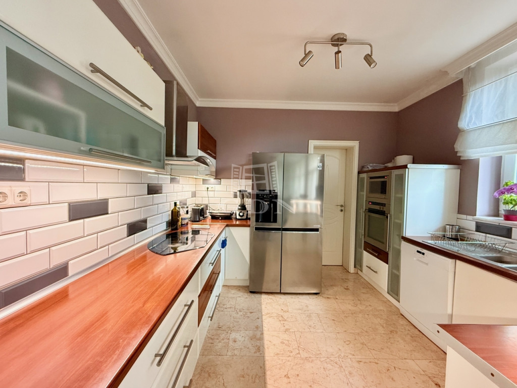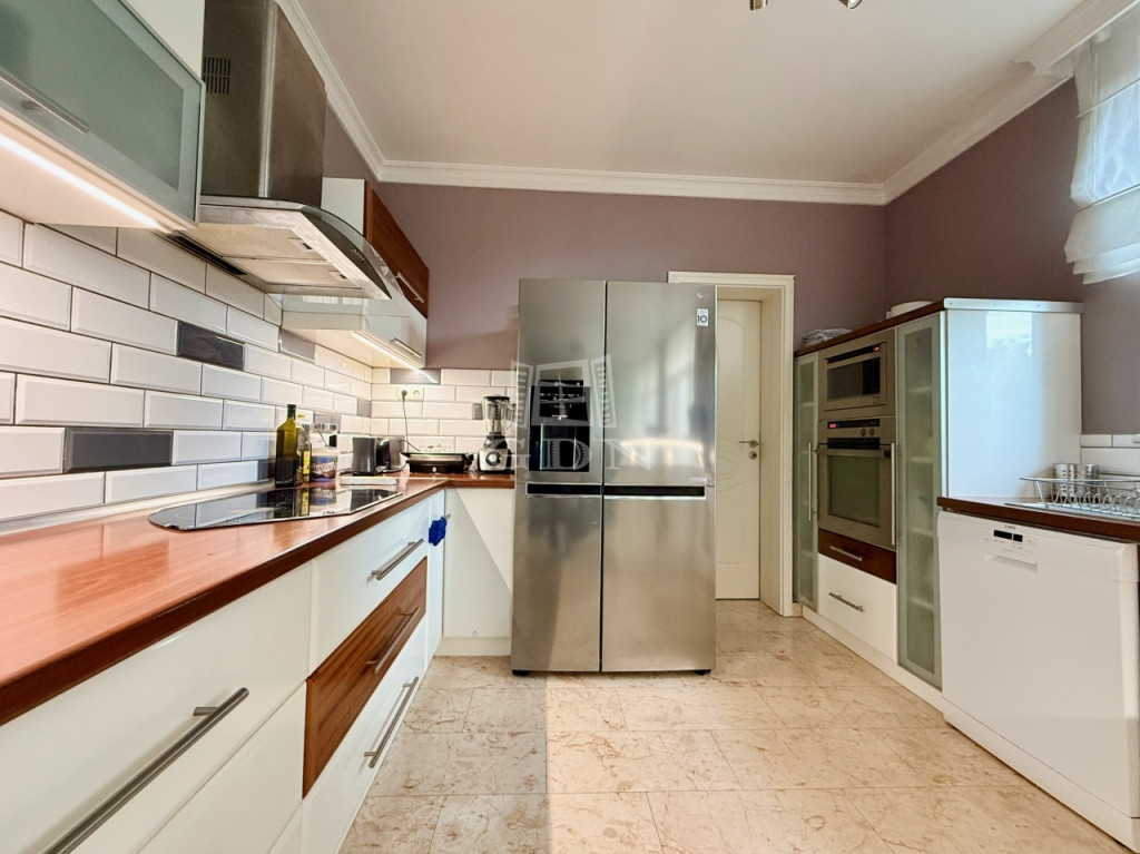 Szentendre egyik legnyugodtabb, domboldali részén, a Bokros utcában található ez a különleges kialakítású, kúria jellegű villa, amely közel 500 m² hasznos alapterülettel és egy 1500 m²-es, panorámás telekkel rendelkezik. Az ingatlan legnagyobb értéke a rugalmassága: minden szint önálló lakóegységként működik, így a ház egyszerre alkalmas nagycsaládos, többgenerációs használatra vagy akár befektetési célú hasznosításra is.