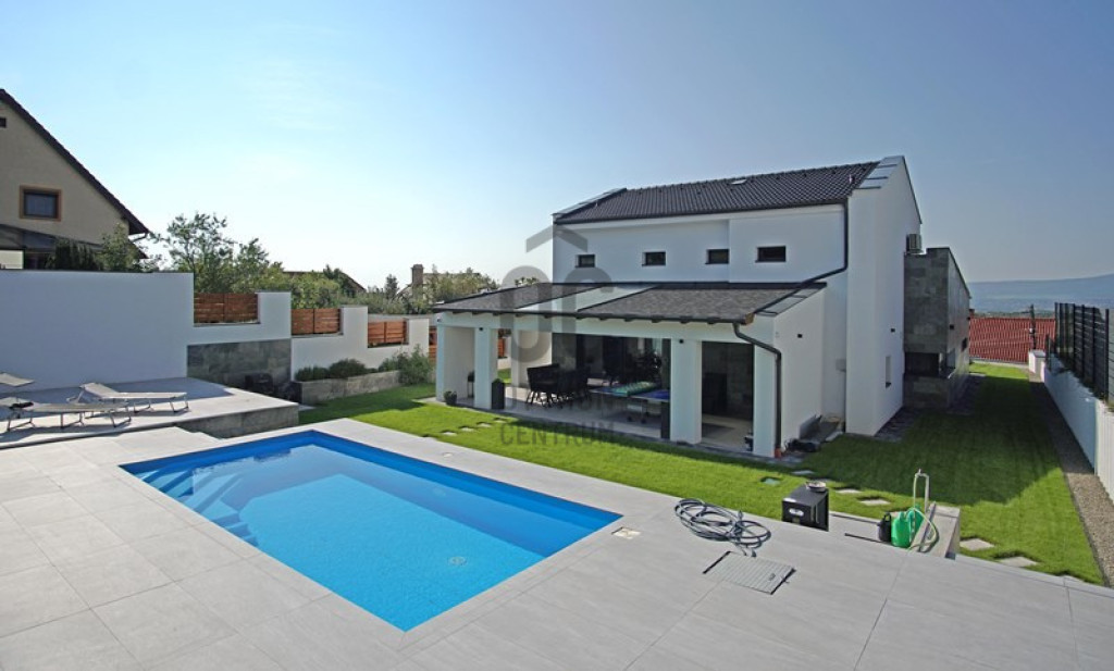 Szentendrén, a déli fekvésű Pismány hegy jól megközelíthető, középső részén található ez a panorámás, családi ház kültéri medencével.