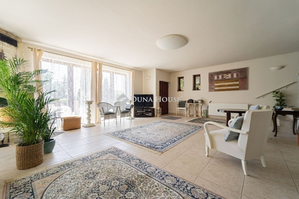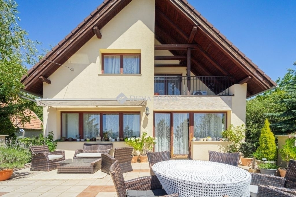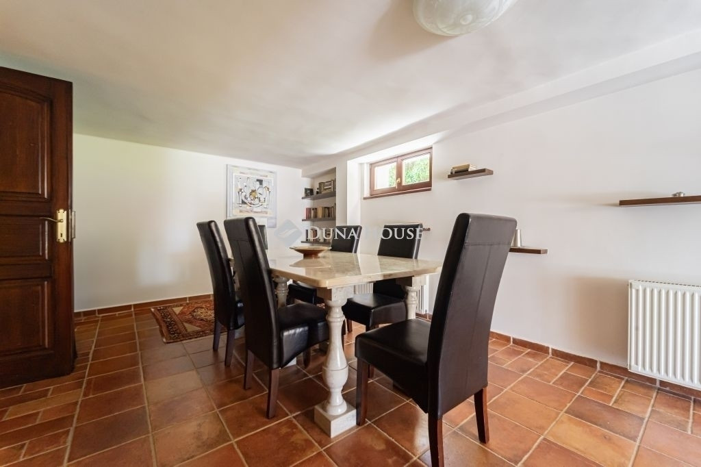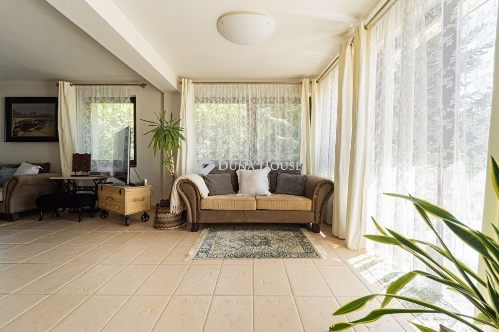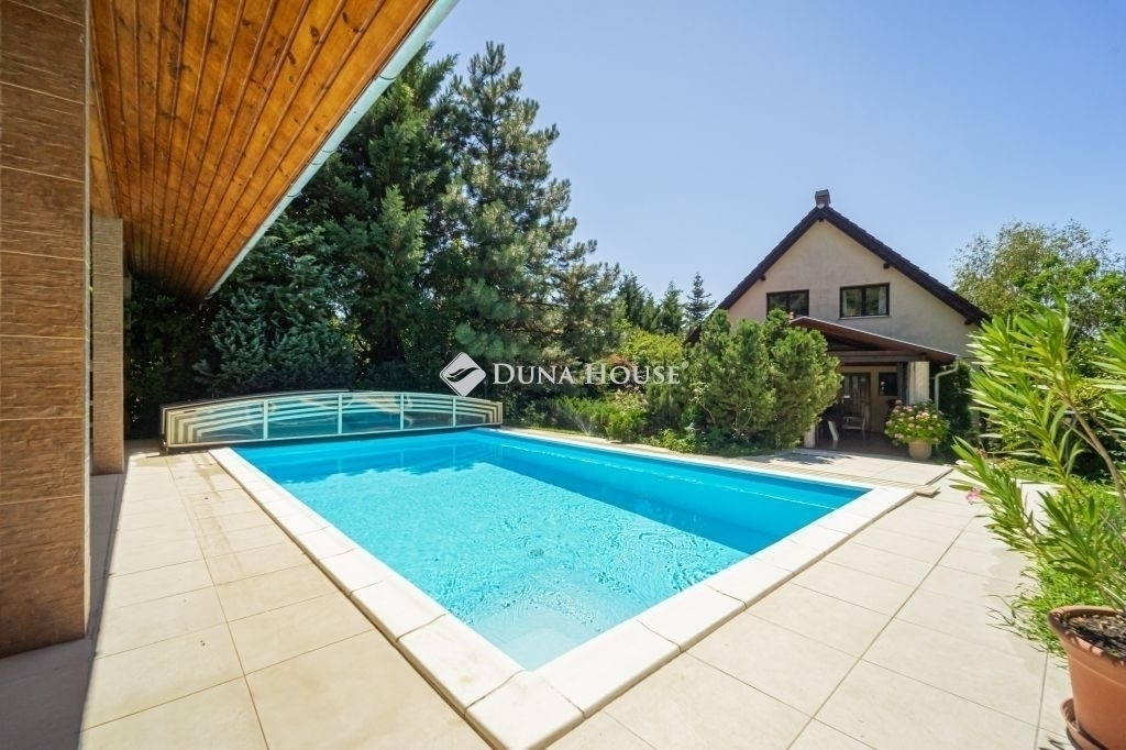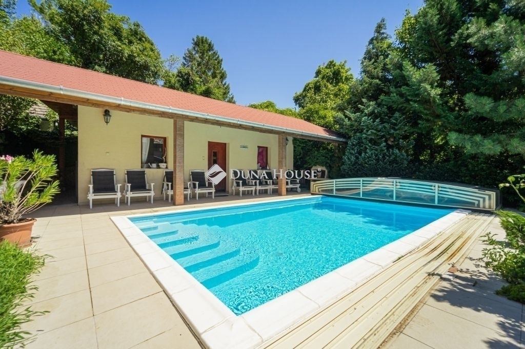 Gyönyörű parkkal körbevett, medencés családi ház vált elérhetővé Szentendre Pismány városrészén, csendes, sík mellékutcában.2 beállós fedett kertibeálló, vendéglakás, medence, tágas épített terek az udvarban és a házban egyaránt - 1992-ben épült ház, mely 2009-ben lett teljeskörűen felújítva, újragondolva. A képek és a videó igyekszik bemutatni ezt a valóban csak személyesen átélhető összhangot.Az alsó szinten tágas nappali, egy szoba, fürdőszoba, wc, tároló és a háztartási helyiség kapott helyet. Az emeleten egy nappali modern, minden igényt kielégítő gépesített konyha, fürdőszoba és egy nagy méretű terasz található, illetve egy hangulatos fedett terasz található. A tetőtér elrendezése 2 szoba, loggia és fürdőszoba. A ház elrendezésének köszönhetően ennél még több szoba kialakítása lehetséges - igény szerint. A ház hasznos alapterülete: 217 nm + a teraszok (92 nm).A kertben található medence mögött egy vendéglakás került kialakításra.Óriásfák, kertész által tervezett tavasztól őszig pompázó, automatizált, parkosított kert, mely a teljességet biztosítja. A telek mérete: 1199 nm.Elhelyezkedésének, összetételének, nagyságának, megközelítési és széles hasznosítási lehetőségeinek köszönhetően saját részre, emellett akár nívós vállalkozás központjának és befektetésnek is egyaránt optimális választás. Kisebb és nagyobb családok, tágas, igényes és egyben elegáns helyet keresők, nagy baráti, ismeretségi körrel rendelkezők, könnyen megközelíthető, mégis nyugodt elhelyezkedést keresők joggal érezhetik, hogy megtalálták, amire szükségük van.További kérdéseivel, megtekintési szándékával várom hívását.