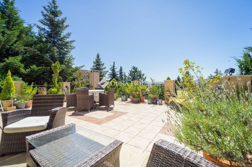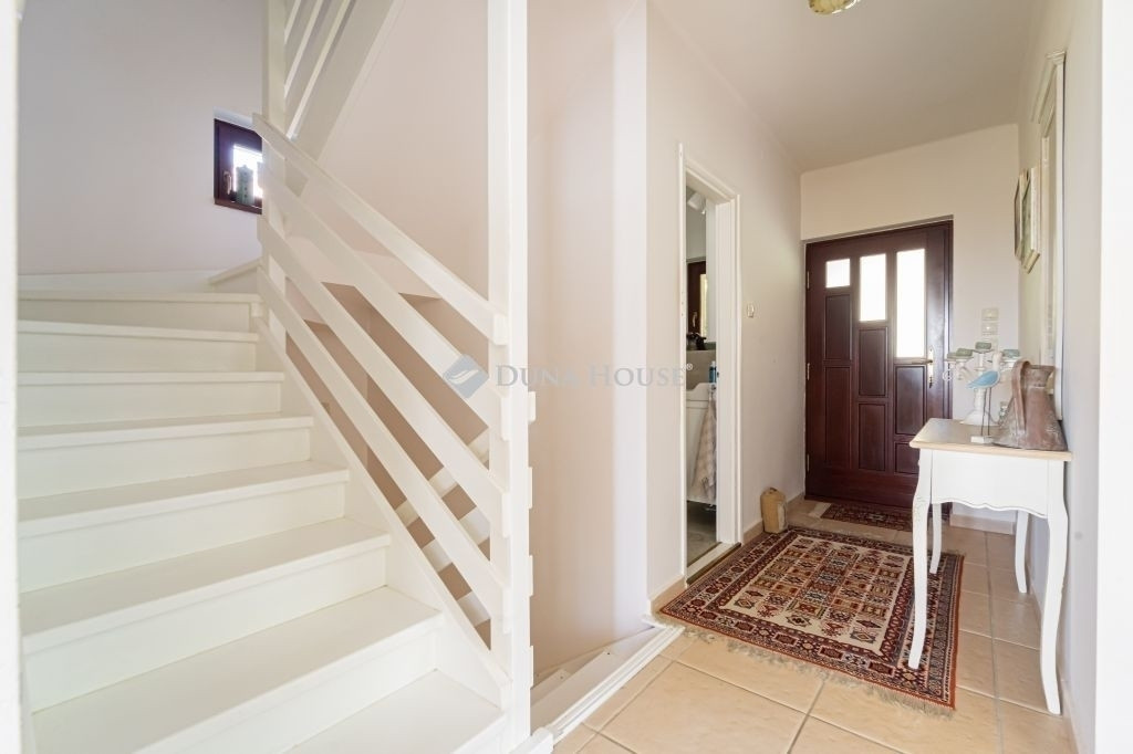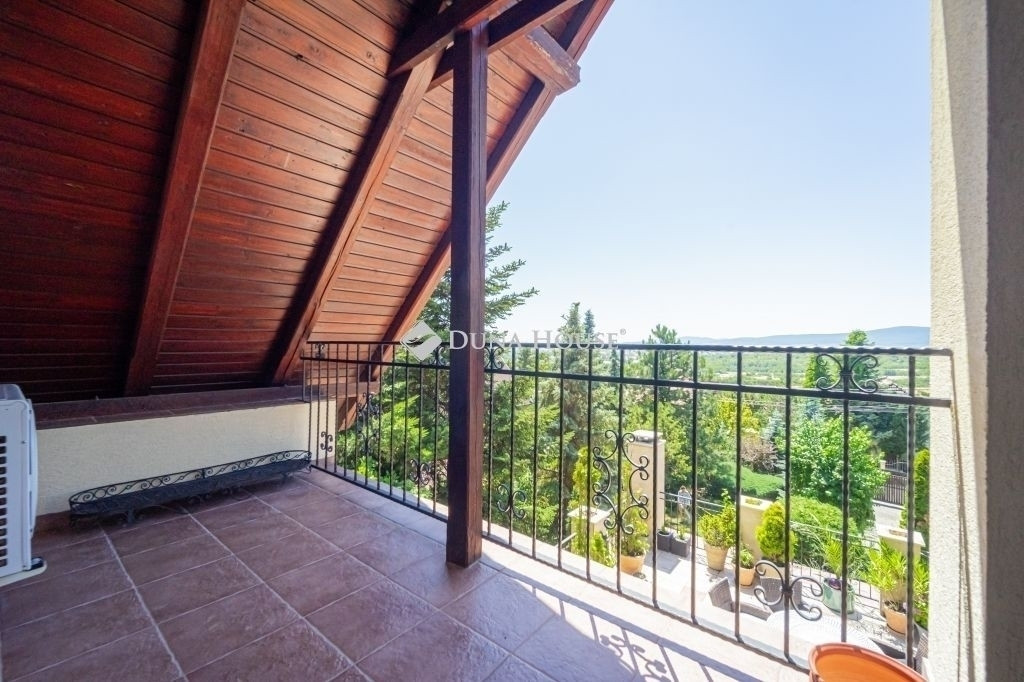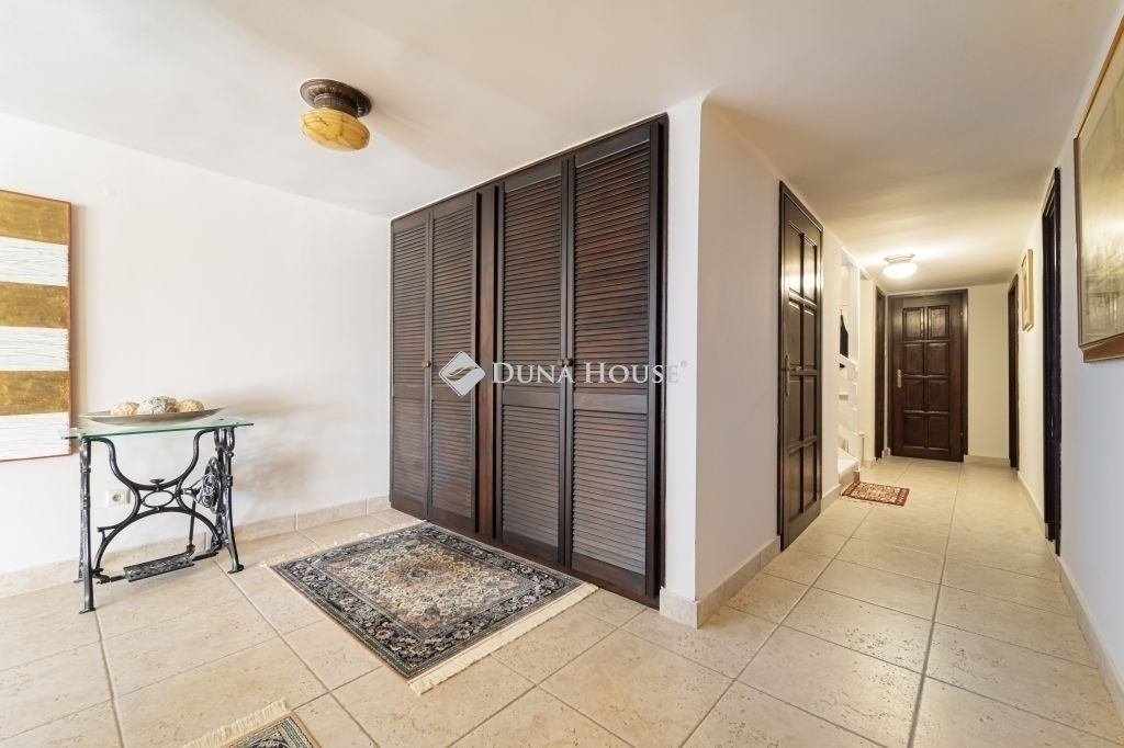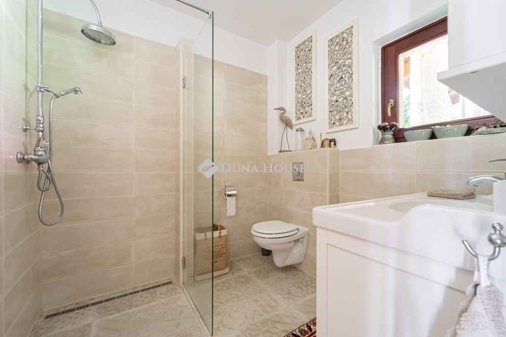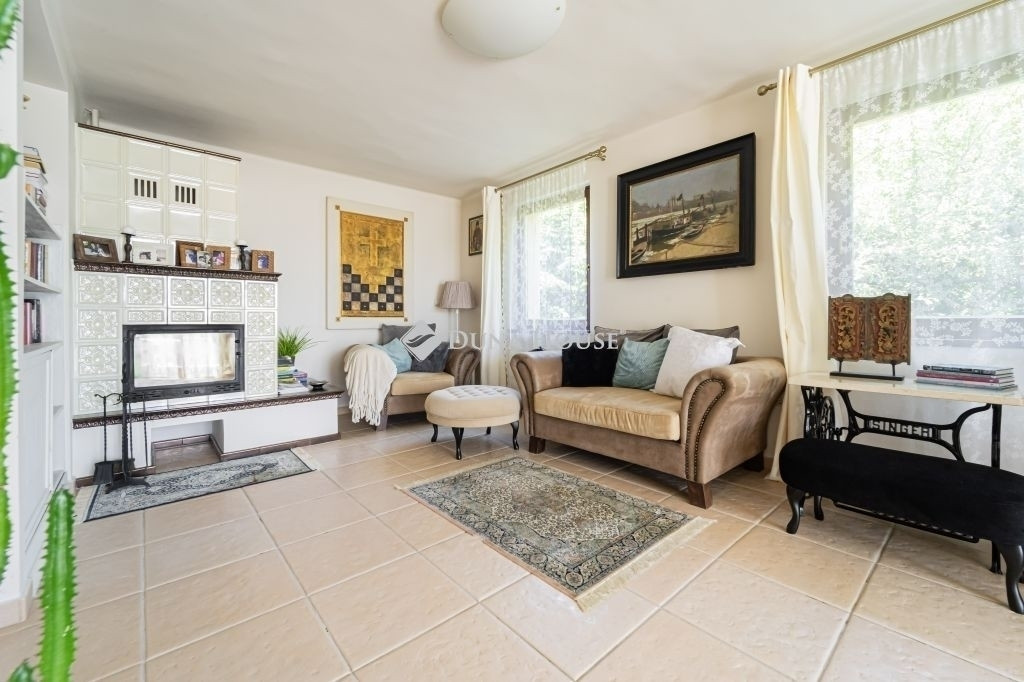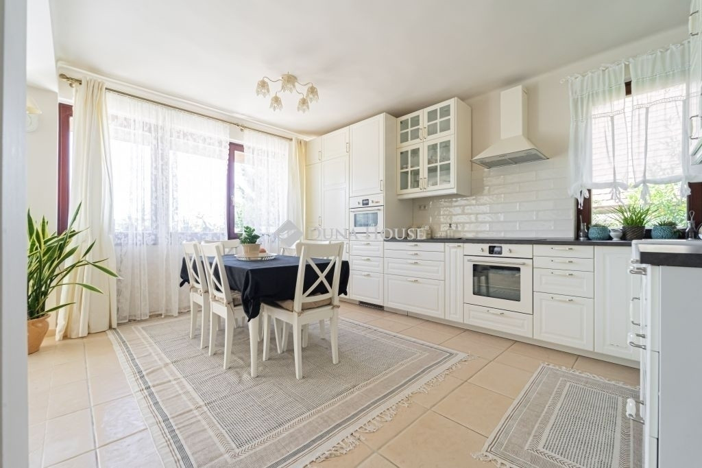Gyönyörű parkkal körbevett, medencés családi ház vált elérhetővé Szentendre Pismány városrészén, csendes, sík mellékutcában.2 beállós fedett kertibeálló, vendéglakás, medence, tágas épített terek az udvarban és a házban egyaránt - 1992-ben épült ház, mely 2009-ben lett teljeskörűen felújítva, újragondolva. A képek és a videó igyekszik bemutatni ezt a valóban csak személyesen átélhető összhangot.Az alsó szinten tágas nappali, egy szoba, fürdőszoba, wc, tároló és a háztartási helyiség kapott helyet. Az emeleten egy nappali modern, minden igényt kielégítő gépesített konyha, fürdőszoba és egy nagy méretű terasz található, illetve egy hangulatos fedett terasz található. A tetőtér elrendezése 2 szoba, loggia és fürdőszoba. A ház elrendezésének köszönhetően ennél még több szoba kialakítása lehetséges - igény szerint. A ház hasznos alapterülete: 217 nm + a teraszok (92 nm).A kertben található medence mögött egy vendéglakás került kialakításra.Óriásfák, kertész által tervezett tavasztól őszig pompázó, automatizált, parkosított kert, mely a teljességet biztosítja. A telek mérete: 1199 nm.Elhelyezkedésének, összetételének, nagyságának, megközelítési és széles hasznosítási lehetőségeinek köszönhetően saját részre, emellett akár nívós vállalkozás központjának és befektetésnek is egyaránt optimális választás. Kisebb és nagyobb családok, tágas, igényes és egyben elegáns helyet keresők, nagy baráti, ismeretségi körrel rendelkezők, könnyen megközelíthető, mégis nyugodt elhelyezkedést keresők joggal érezhetik, hogy megtalálták, amire szükségük van.További kérdéseivel, megtekintési szándékával várom hívását.