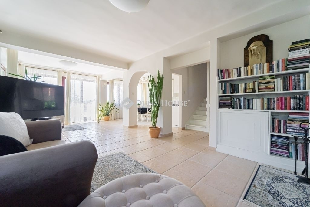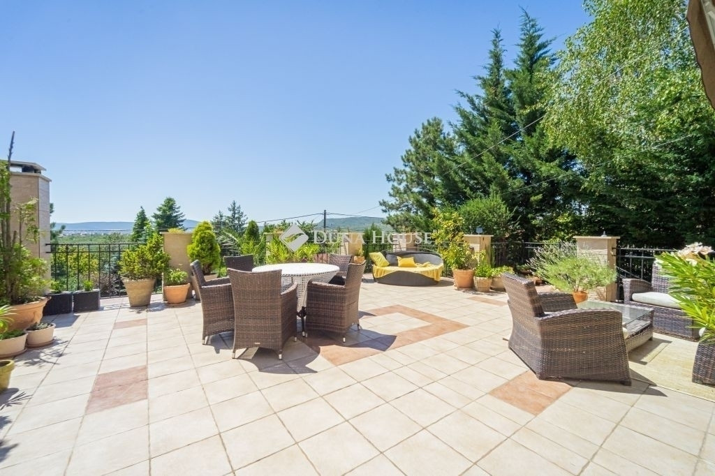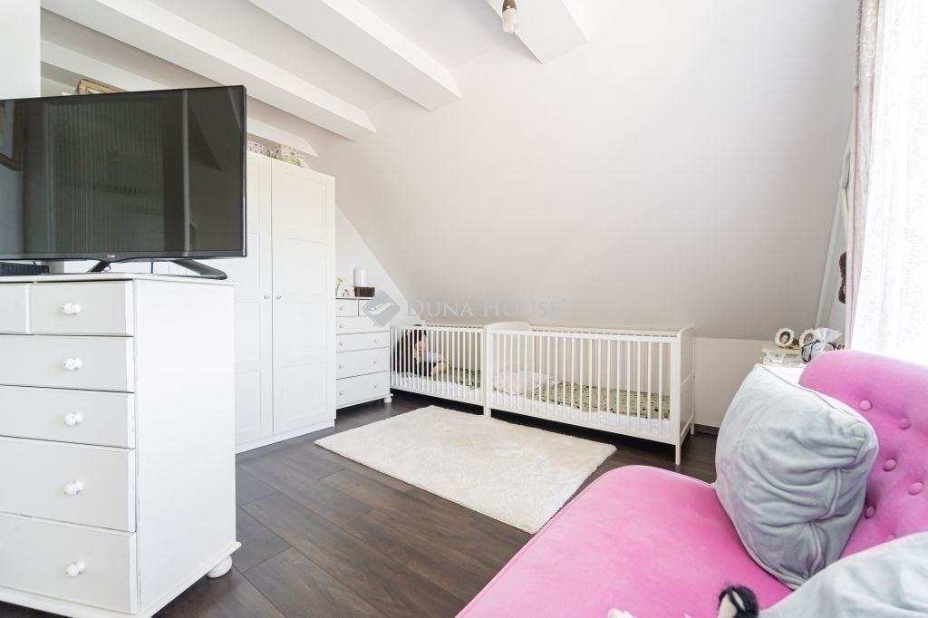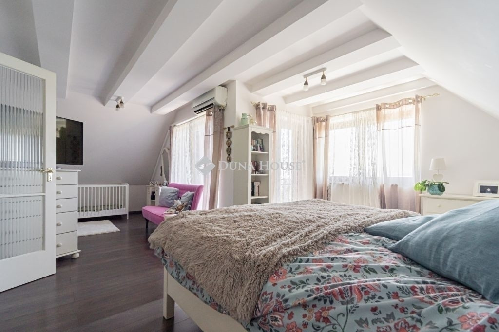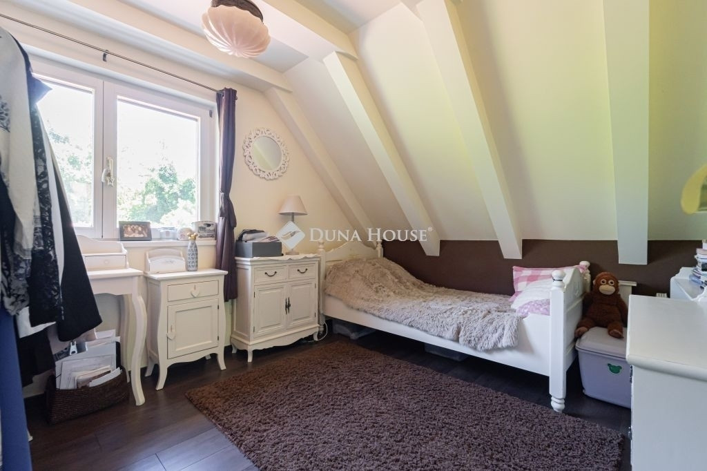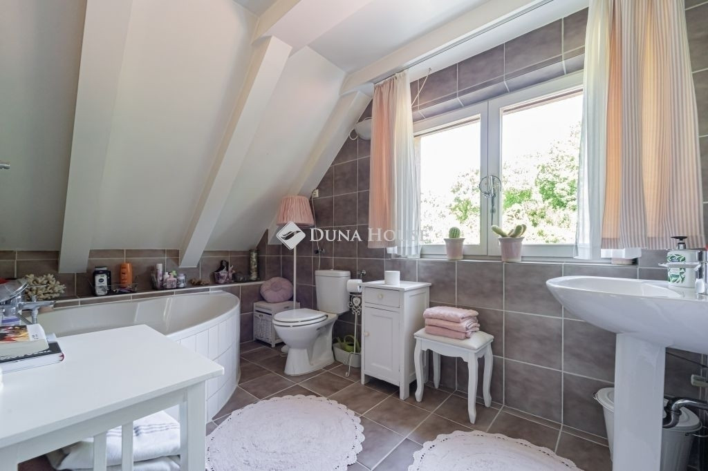 Gyönyörű parkkal körbevett, medencés családi ház vált elérhetővé Szentendre Pismány városrészén, csendes, sík mellékutcában.2 beállós fedett kertibeálló, vendéglakás, medence, tágas épített terek az udvarban és a házban egyaránt - 1992-ben épült ház, mely 2009-ben lett teljeskörűen felújítva, újragondolva. A képek és a videó igyekszik bemutatni ezt a valóban csak személyesen átélhető összhangot.Az alsó szinten tágas nappali, egy szoba, fürdőszoba, wc, tároló és a háztartási helyiség kapott helyet. Az emeleten egy nappali modern, minden igényt kielégítő gépesített konyha, fürdőszoba és egy nagy méretű terasz található, illetve egy hangulatos fedett terasz található. A tetőtér elrendezése 2 szoba, loggia és fürdőszoba. A ház elrendezésének köszönhetően ennél még több szoba kialakítása lehetséges - igény szerint. A ház hasznos alapterülete: 217 nm + a teraszok (92 nm).A kertben található medence mögött egy vendéglakás került kialakításra.Óriásfák, kertész által tervezett tavasztól őszig pompázó, automatizált, parkosított kert, mely a teljességet biztosítja. A telek mérete: 1199 nm.Elhelyezkedésének, összetételének, nagyságának, megközelítési és széles hasznosítási lehetőségeinek köszönhetően saját részre, emellett akár nívós vállalkozás központjának és befektetésnek is egyaránt optimális választás. Kisebb és nagyobb családok, tágas, igényes és egyben elegáns helyet keresők, nagy baráti, ismeretségi körrel rendelkezők, könnyen megközelíthető, mégis nyugodt elhelyezkedést keresők joggal érezhetik, hogy megtalálták, amire szükségük van.További kérdéseivel, megtekintési szándékával várom hívását.