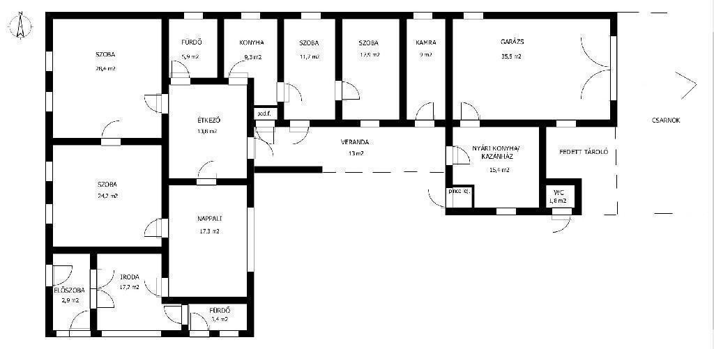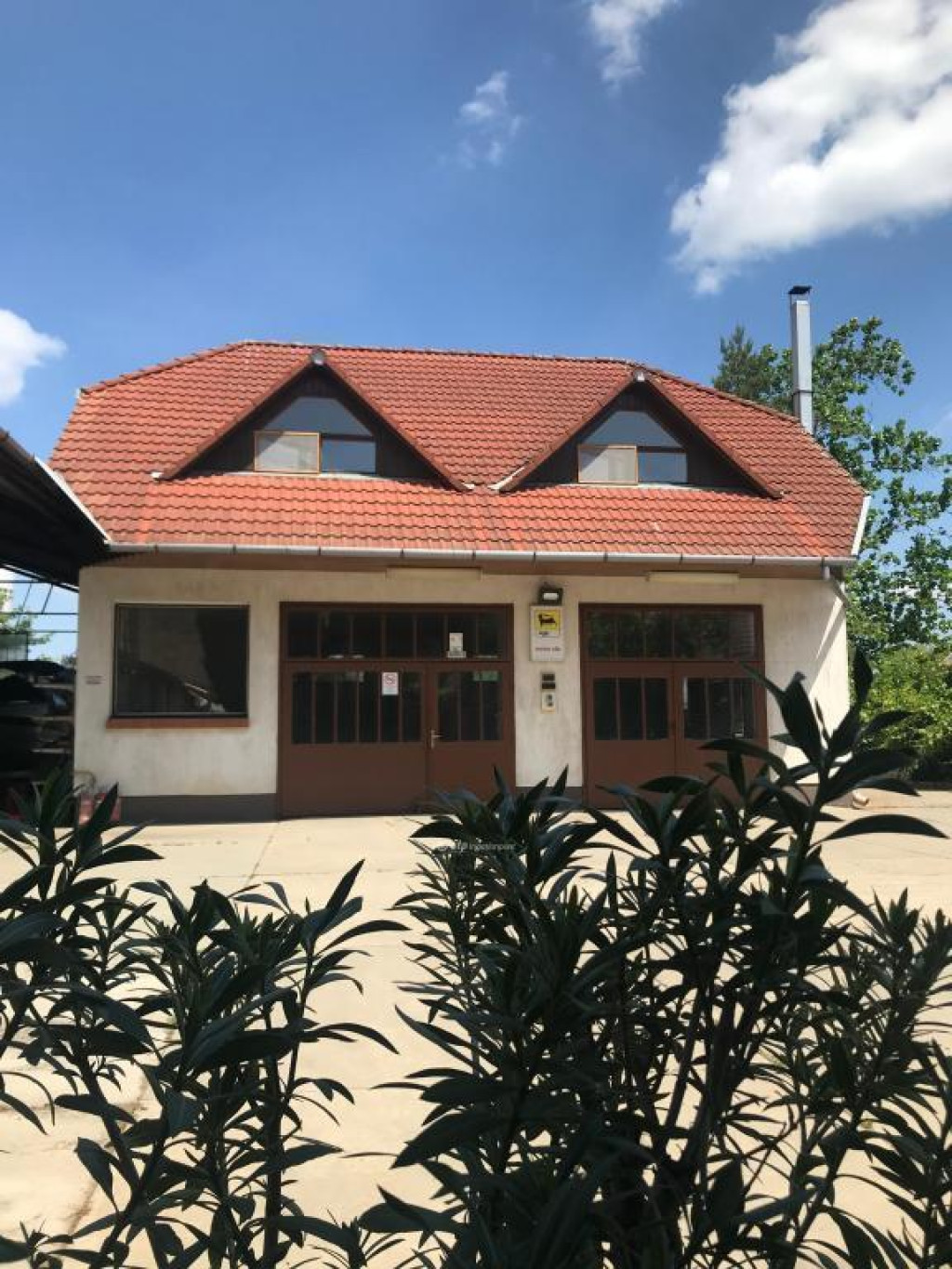 A nyári konyhából keresztül jutunk a fűthető, 35 m2-es garázsba, 2,7 méteres belmagassággal és széles, üvegezett ipari ajtóval, amelyhez külön gázóra is tartozik. A műhely mögött egy 256 m2-es, fedett csarnok kapott helyet, amely ideális raktározásra, gyártási tevékenységre, géptárolásra vagy egyéb ipari felhasználásra. A csarnok előtt nagy, betonozott munkaterület található, amely megkönnyíti az árumozgatást és logisztikát.