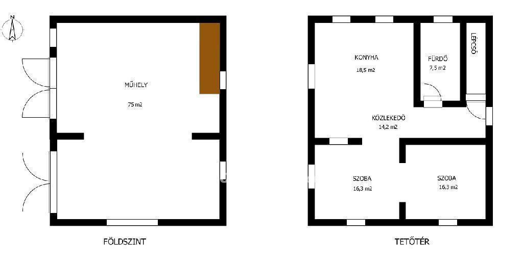 Az udvar hátsó részében szerelőaknás 75 m2-es műhely áll, amely felett egy külön bejáratú, 72 m2-es, modern tetőtéri lakás került kialakításra. A lakás amerikai konyhás nappalival, külön hálószobával, sarokkádas fürdőszobával és saját gázkazánnal rendelkezik, így kiváló lehetőség szolgálati lakásnak, irodának vagy vendéglakásnak.