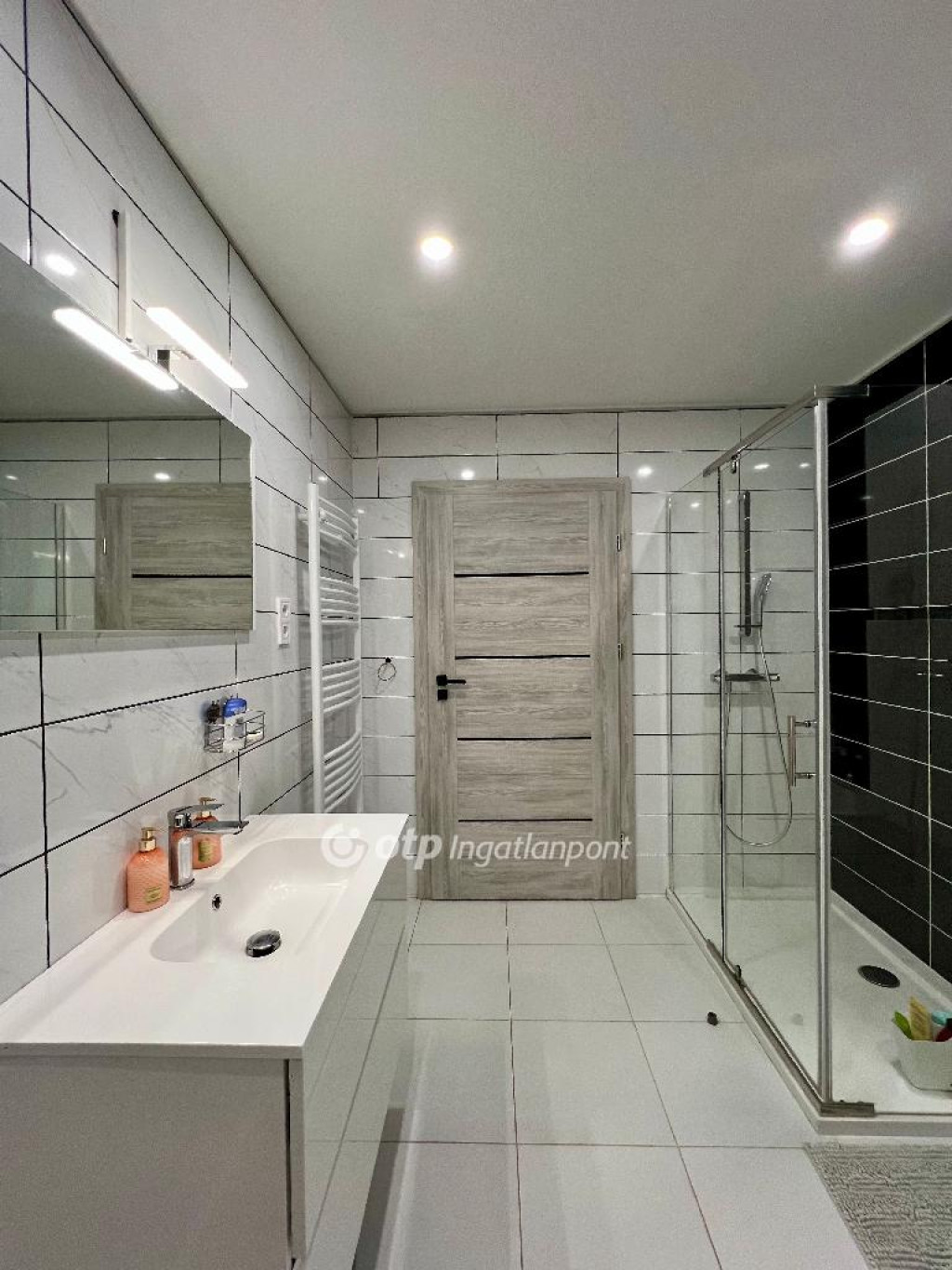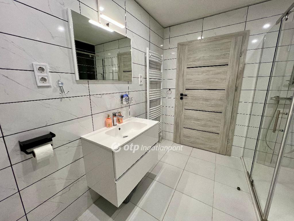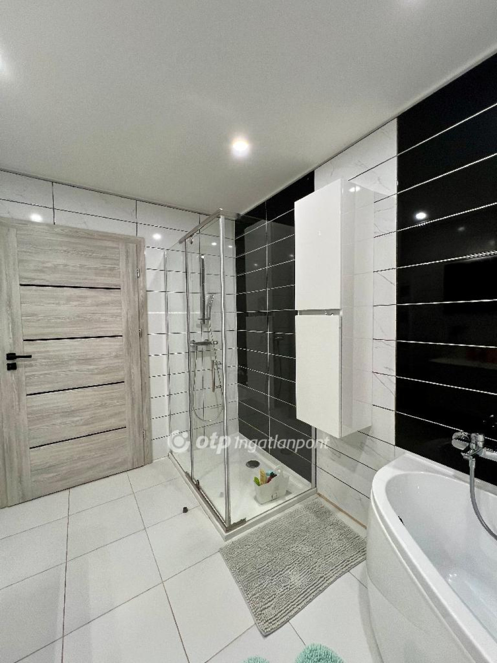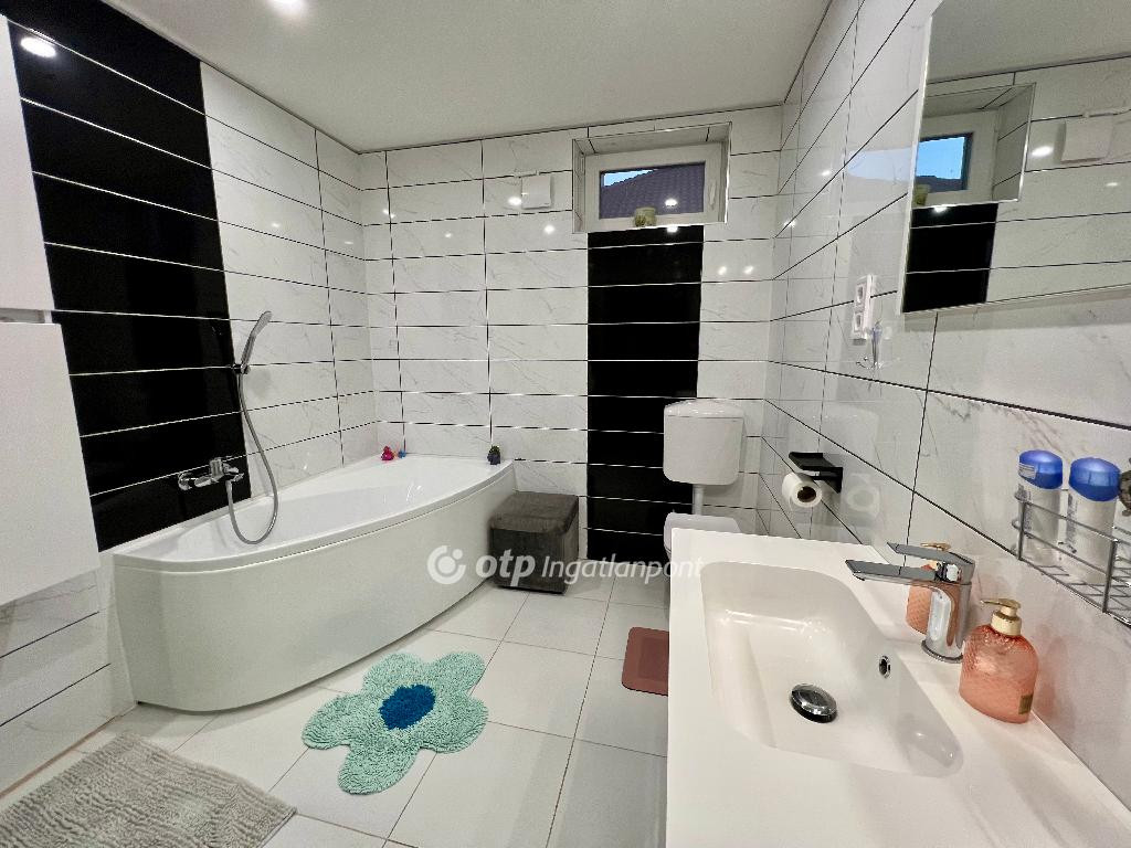 A fő hálószoba saját fürdővel rendelkezik (zuhanyzó + WC), míg a másik fürdőszobában sarokkád, zuhanyzó és WC kapott helyet.
