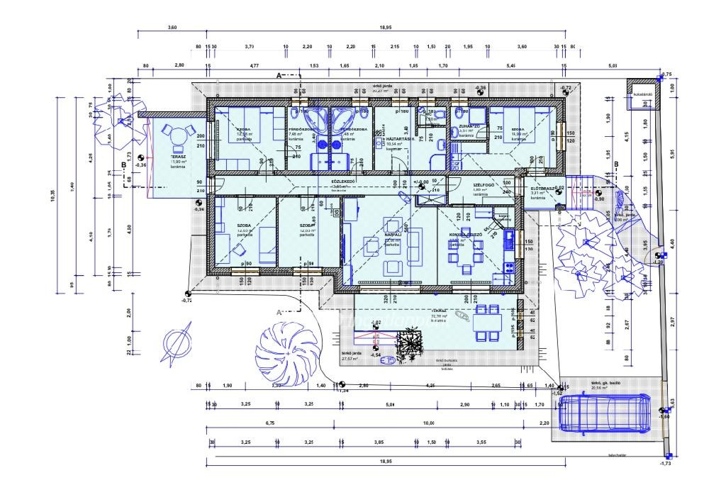A ház 145 nm hasznos alapterületű, modern szigeteléssel: külső falak (15 cm), mennyezet (10 cm), aljzat (15 cm).