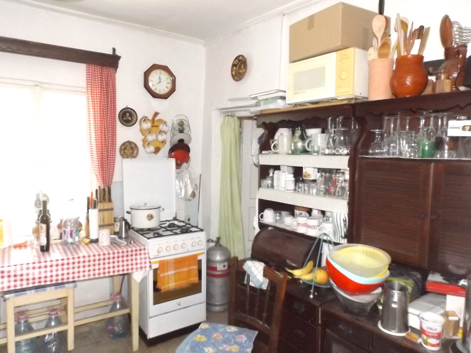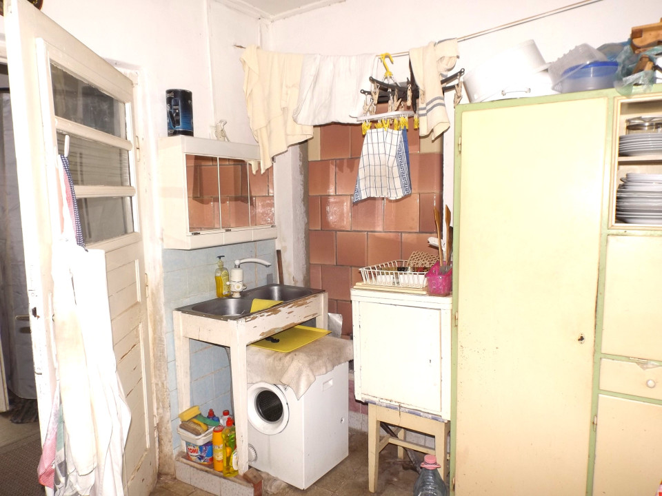 A telken egy felújítandó, másfél szobás családi ház található, amely beton alapú, cseréptetős szerkezettel rendelkezik. Helyiségei: kis terasz, előtér(itt kapot helyet a zuhanyfülke és atoalett, amely függönnyel elszeparált rész. Jobbra kis hálószoba, balra nagy hálószoba, középen konyha, onnan nyílik a kamra. A ház ideális lehet azok számára, akik a saját ízlésük szerint szeretnék formálni otthonukat. A közművek – víz, villany és derítő – már rendelkezésre állnak, így a felújítás gyorsan és kényelmesen megkezdhető. A szomszéddal közösen használt ásott kút nagyon hasznos aszályos időkben. Melléképületek lebontásra kerültek, a gépkocsibeálló egy fa szerkezetű építmény. Telken melegítős kültéri zuhanyzó és egy kiülő rész teszi hangulatossá a nyári napokat.