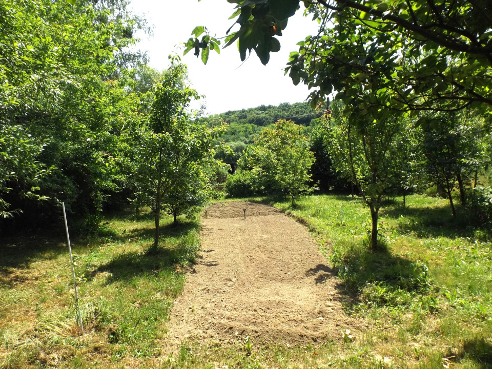 A gondosan művelt telken számos gyümölcsfa terem bőséggel – a kert évszakról évszakra ajándékokkal halmoz el: illatos almák, lédús körték, barackok és más finomságok várják a gondos kezeket. Egy kis konyhakert is megbújik a zöldben, ahol saját termesztésű friss zöldségekkel gazdagítható a családi asztal.