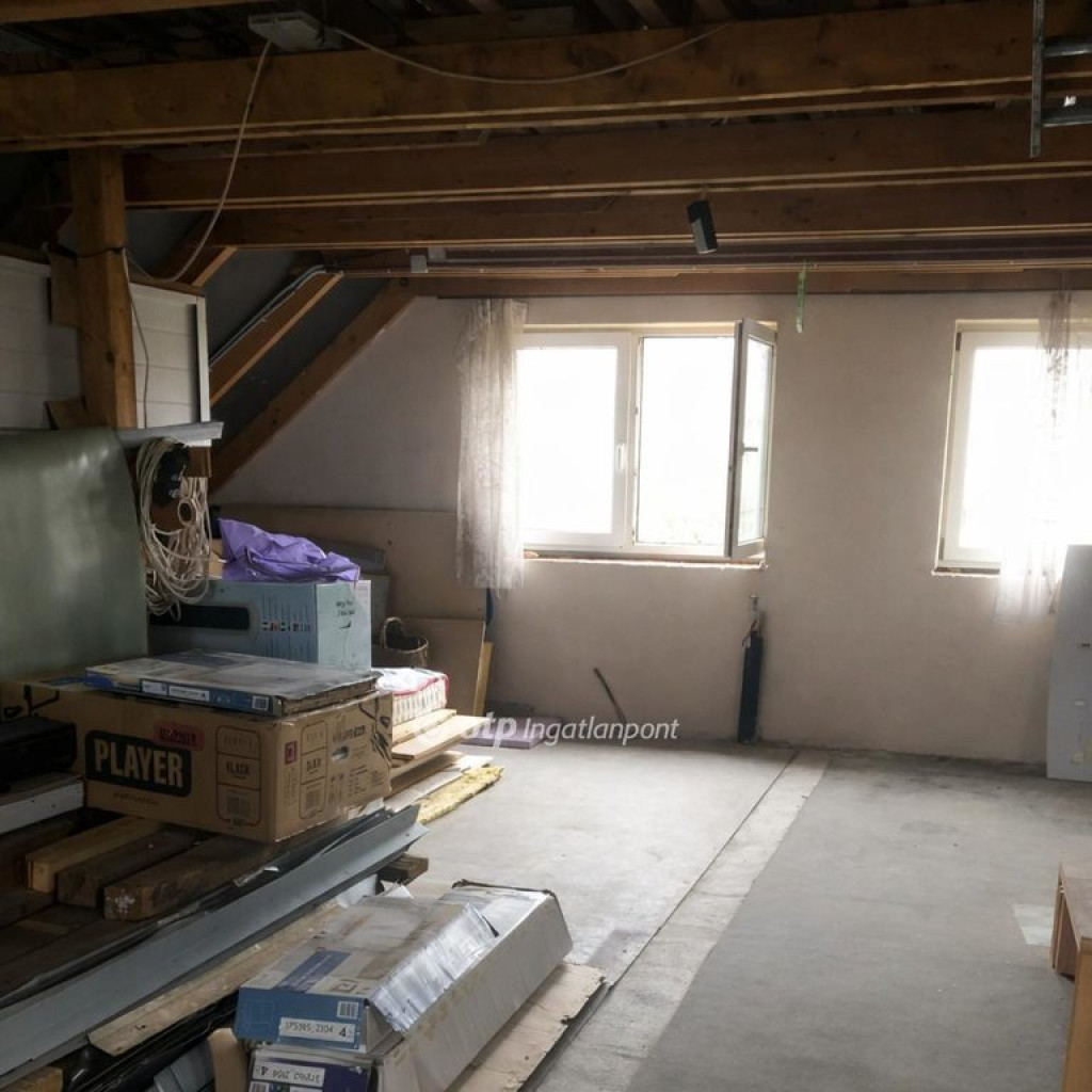 A tetőtér beépítése engedéllyel, szakértői tervrajzok alapján történt, további lakóhelyiségek kialakítására alkalmas. A belső lépcső helye ki van jelölve, a fűtéshez a gázcső két ponton fel van vezetve. A tetőtérben műanyag ablakok, két tetőtéri ablak, valamint egy teraszajtó található, amely a külső lépcsőre nyílik. Jelenleg tárolásra használják, a befejezés az új lakók igényeire vár.