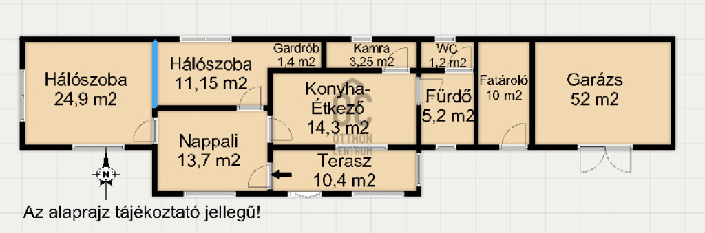 - garázs dupla méretű: 52 m2 nagyságú, melyben a víz és a villany is rendelkezésre áll