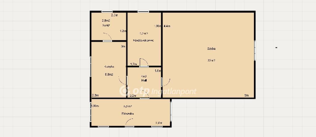 -a belső helyiségekben : előszoba , hall , 1 szoba , konyha , spájz , fürdőszoba+wc található