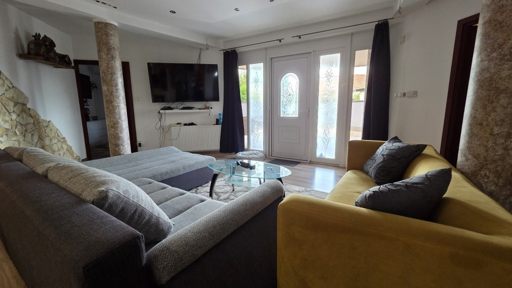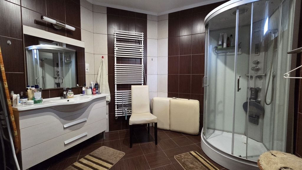 A 3 hálószobás, valamint egy hatalmas nappali + étkező + konyha kombinációval kivitelezett téglaház fűtése a 2020-as korszerűsítés után a következőképpen alakult: a hálószobák kivételével az egész házban, a 28 m2-es, a házzal közös födémű teraszt is beleértve - mely így bármikor beépíthető - padlófűtés lett építéskor telepítve. Ezt egy kombi gázkazán melegíti, ahogy az összes helyiségben elhelyezett radiátort is. Mindezt támogatja télen-nyáron a két, napelemhez kapcsolt hűtő-fűtő klíma. A kazán a garázsban lett elhelyezve, és ehhez kapcsolva egy 200 literes melegvizet tároló tartály is. Az ingatlan mögötti kerítés már erdővel határos. A házhoz 440 m2 telekterület tartozik. Elektromos kapu, riasztó, kamera rendszer, redőny és szúnyogháló minden műanyag, hőlégkamrás ablakon, egyedi, katedrál üveges bejárati ajtó, két fürdőszoba, gardrób és spejz teszi különlegessé és otthonossá az ingatlant.