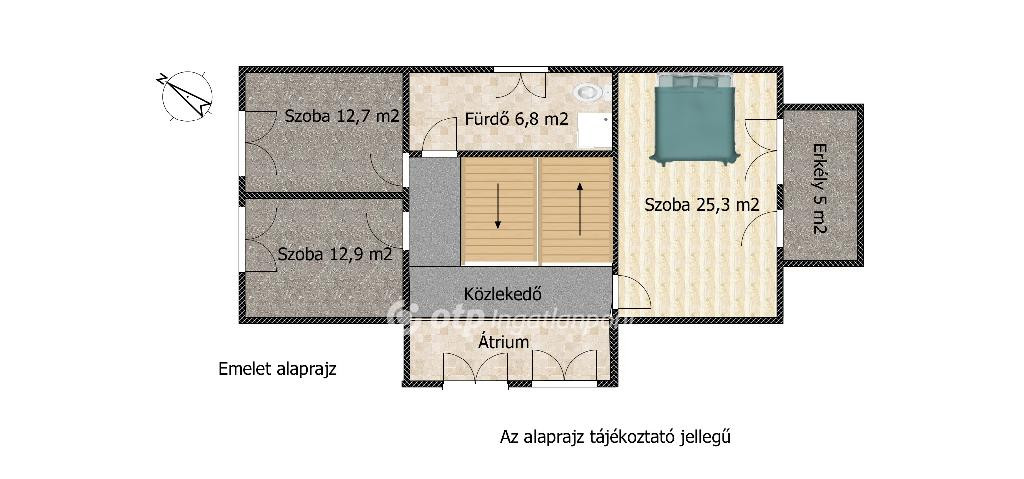 Az emeleten három tágas hálószoba várja lakóit, és az emeleti fürdőszoba praktikusan segíti a reggeli készülődést, amely zuhanyzóval és wc-vel felszerelten áll rendelkezésre. A szobákban a beépített bútorok megkönnyíti a rendszerezést és a ruha tárolását. A ház alatt található egy szuterén, amely kiválóan alkalmas lehet üzlethelyiség, iroda vagy szolgáltató egység kialakítására. Külön bejárattal rendelkezik, így akár teljesen elszeparált vállalkozás is működtethető benne.