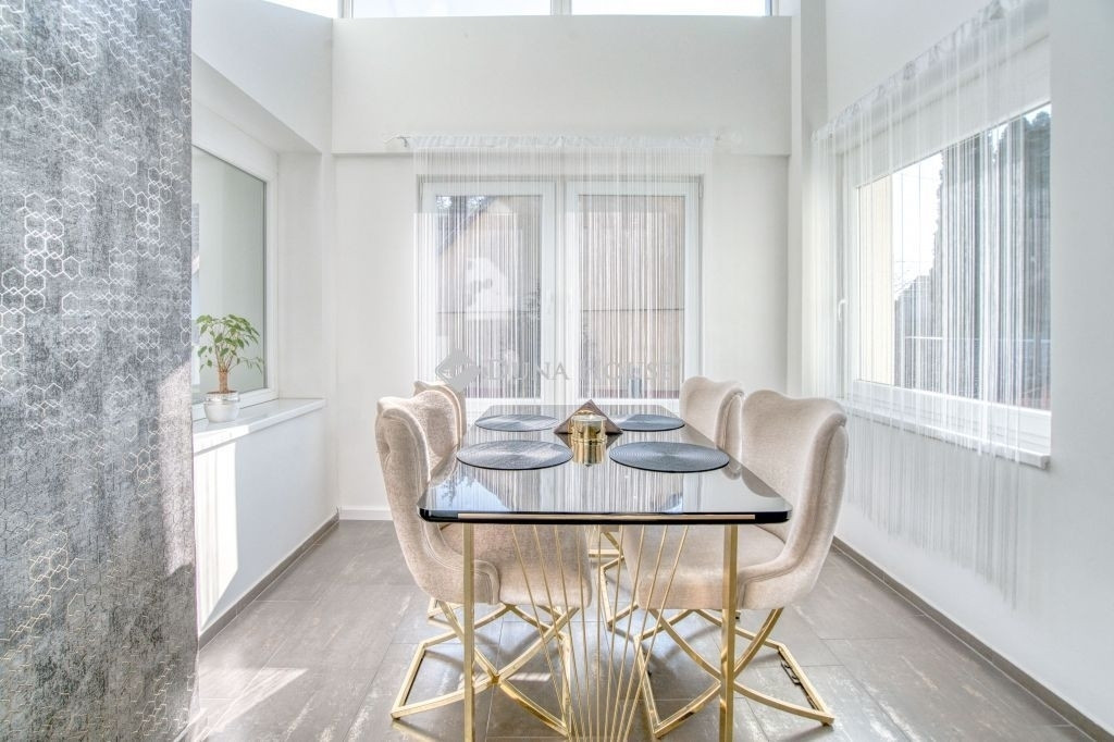 A ház belső tereit igényesen felújították, modern IKEA konyha került beépítésre. A fűtésről hőszivattyús rendszer gondoskodik, a nyári hónapokban klíma biztosítja a kellemes hőmérsékletet. Az ingatlan 10 cm homlokzati szigeteléssel és műanyag nyílászárókkal rendelkezik.