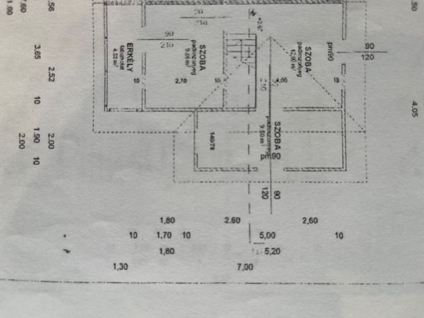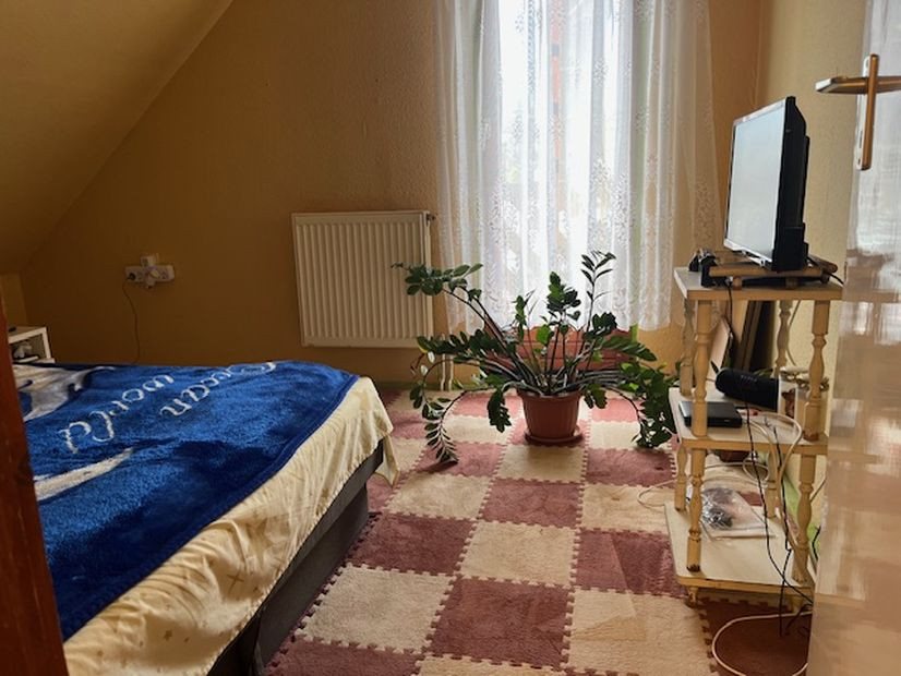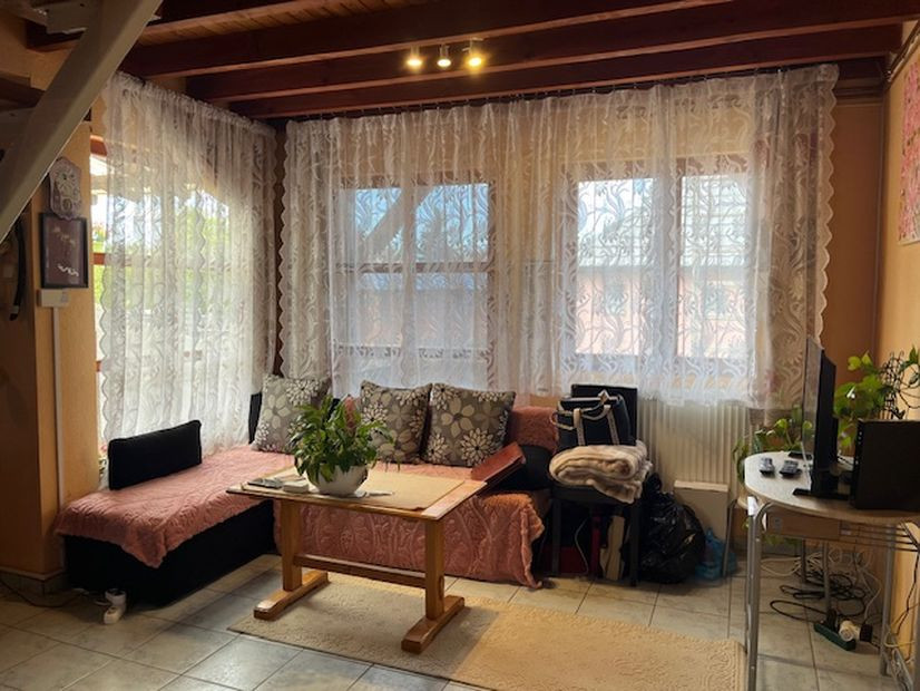 Elosztása:földszinten -előtér, amerikai konyhás nappali, fürdőszoba. Tetőtérben:közlekedő, 3 külön bejáratú szoba,loggia.