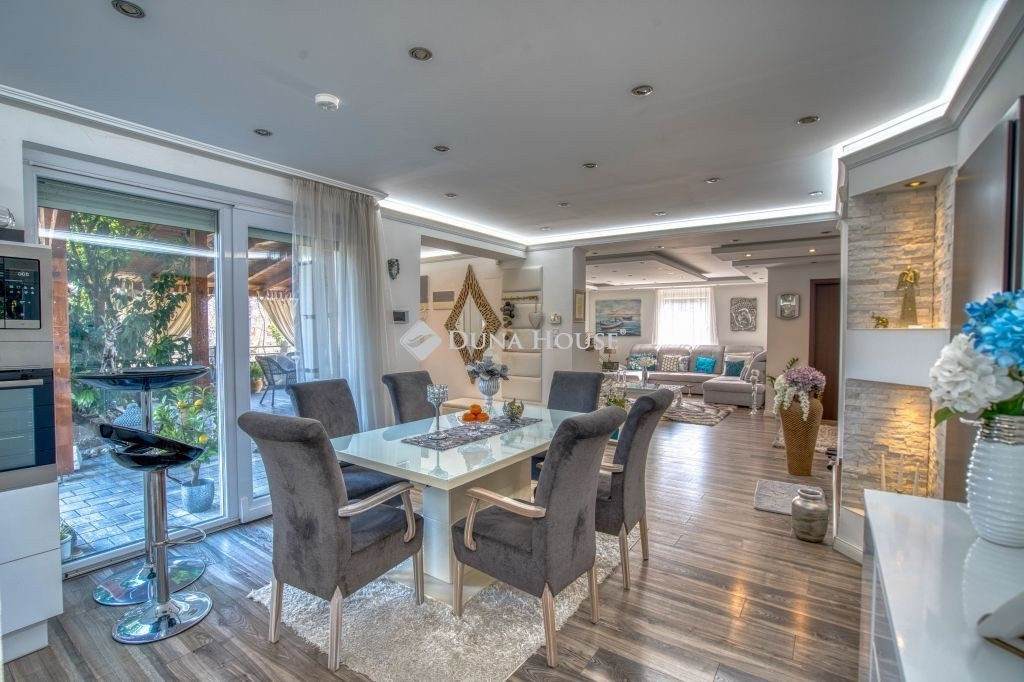 Szigethalom dunaparti részén eladó egy kivételes adottságokkal és műszaki tartalommal rendelkező, újszerű állapotú családi ház, amely tágas terekkel, hatalmas teraszokkal és saját stéggel kínál különleges életminőséget.
