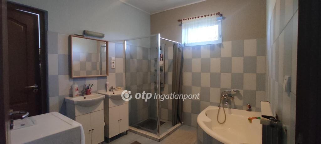 Szigethalom Duna parthoz közel eső, kertvárosi részén kínálunk eladásra egy 130 nm-es, (nettó 87 nm) tehermentes,a 3%-os hitelre alkalmas családi házat. A ház 2014-ben épült, 30-as Porotherm téglával és 8 cm hőszigeteléssel. Nagyon világos, meleg, barátságos lakás, nagy terek jellemzik, amihez hozzájárul az amerikai konyhás nappali nagysága (33 nm), valamint a 3 m körüli belmagasság. A bejáratnál helyezkedik el az előszóba, melyből jobb oldalra a különálló WC nyílik, előre haladva pedig a nagy amerikai konyhás nappaliba érkezünk. Innen nyílik a két különálló szoba, a kádas, zuhanyzós, dupla kézmosóval rendelkező fürdőszoba és a konyha részhez közel eső kamra. A fürdőszobából nyílik egy gardrób helyiség, melyet jelenleg félszobaként használnak. Innen van a padlásfeljárás. A padlástér igény szerint beépíthető. A konyha része egy 120 cm x 200 cm-es konyhasziget, mely a benne levő elektronikával a vételár részét képezi. A nappaliból 4 részes üvegajtón keresztül juthatunk a hatalmas, fedett teraszra. (24 nm) A telek mérete 443 nm, melyen fúrt kút található, innen van a kis zöldségeskert locsolása. Továbbá a telken található még egy épített kemence is. A ház alatt, 21 nm nagyságban, két autó parkolására alkalmas garázs található, melyet a jelenlegi tulajdonos pinceként használ. Itt található a fűtést adó vegyes tüzelésű kazán, a hozzá kiépített rendszerrel.(puffertartály, tágulási tartály) A fűtés rásegítéseként és a meleg víz előállítására, 40 db hit pipe szolárcső van a tetőre szerelve. A szolárcsövek, télen is, napsütéses időben 40-45 fokos meleg vizet képesek előállítani. De a köztes időszakokra villanybojler is van bekötve a rendszerbe. A lakásban a hőleadást radiátorok és padlófűtés végzi. Csendes zsákutcában található az ingatlan, Közelben, 5 perc autóval, vannak: bölcsőde, óvodák, iskola, játszótér, éjjel-nappali gyógyszertár, rendelők. De a híres Szigethalmi Vadaspark is a közelben található. Kikapcsolódásra 2 perc sétával megközelíthető a Duna parti sétány, valamint az ott lévő éttermek, szórakozási lehetőségek. Ideális lehetőség fiatal pároknak, gyerekes családoknak, vagy a nyugalomra vágyóknak egyaránt.