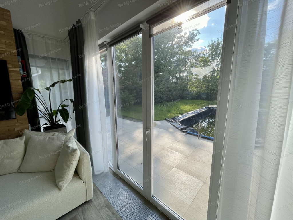 A ház külső állapota szintén kiváló, és a kertre néző kilátás biztosítja a nyugodt, zöld környezetet, ahol kellemesen töltheti el szabadidejét. Kertben helyezkedik el egy beépitett megvilágitható medence. A ház fűtése gázkazánnal megoldott, emellett padlófűtés is rendelkezésre áll, ami a téli hónapokban kényelmes melegséget nyújt. A mobil klíma gondoskodik a nyári hűvös levegőről, így az év minden szakában komfortosan élhet.