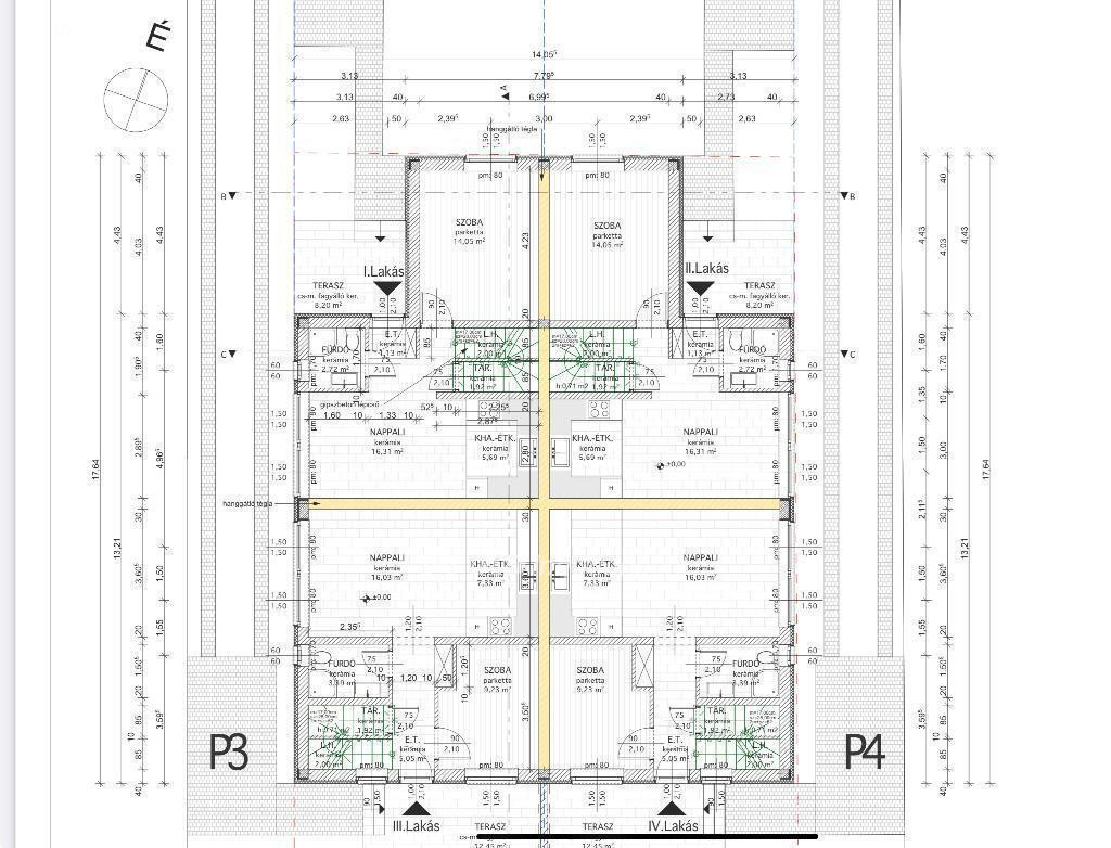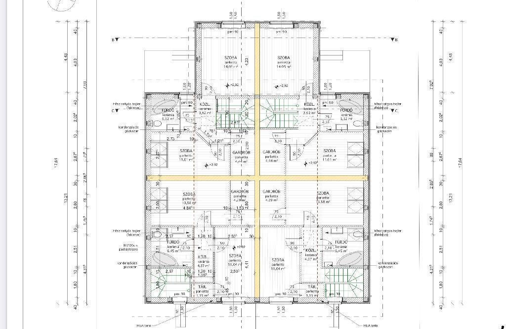 . A lakások egymáshoz fő falakkal kapcsolódnak.