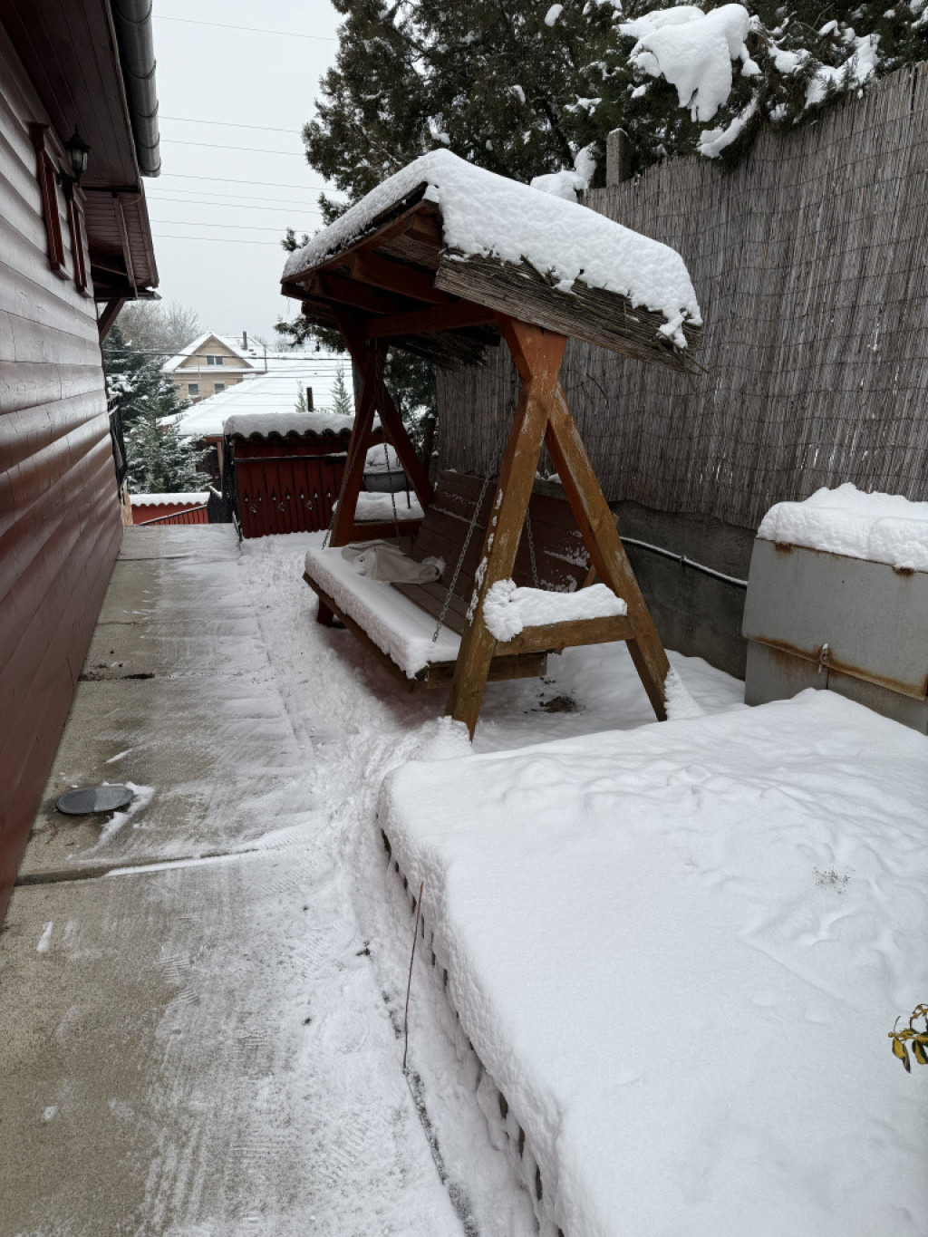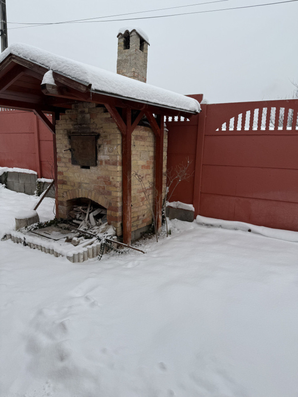 A házhoz parkosított rendezett 500 nm-es telek tartozik ,melyen egy kis épített kemence található.