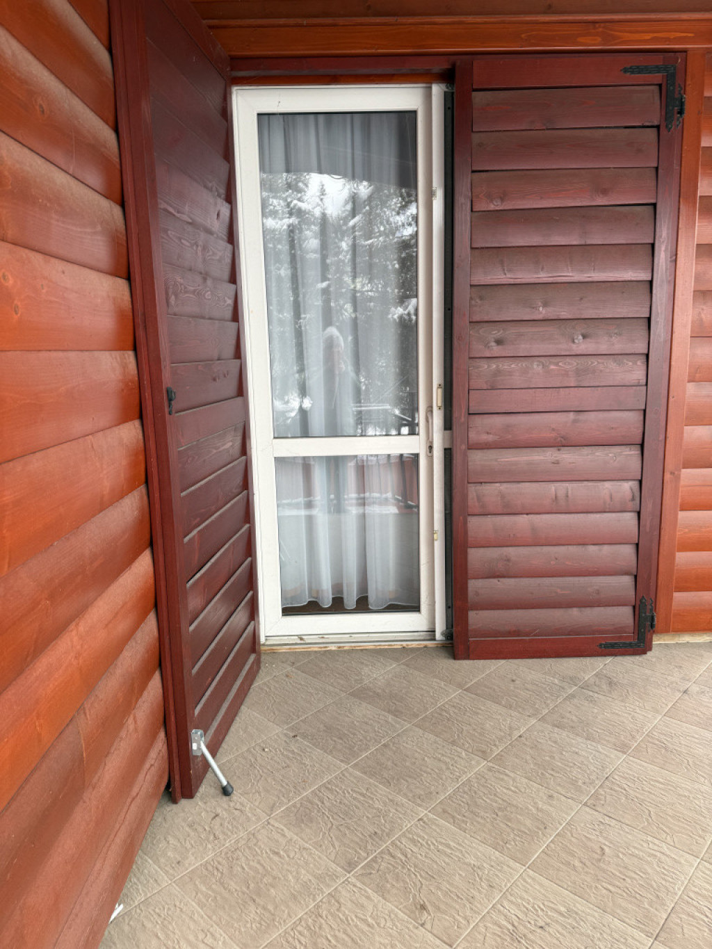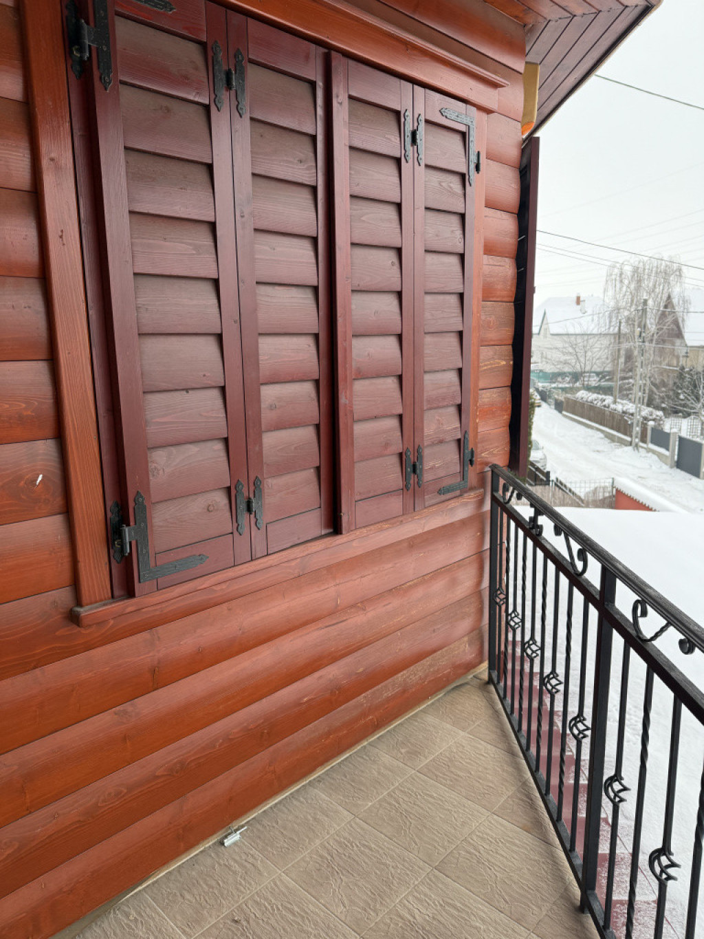 Az ablakokon redőnyök, szúnyoghálók, nappaliban zsalugáterek vannak.