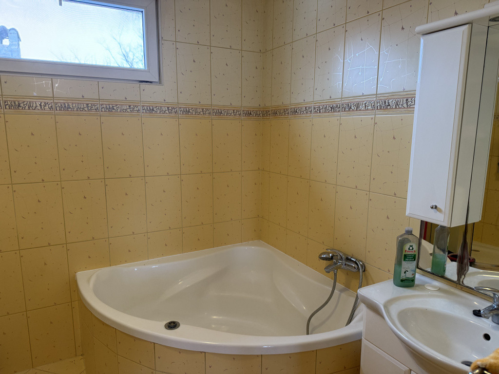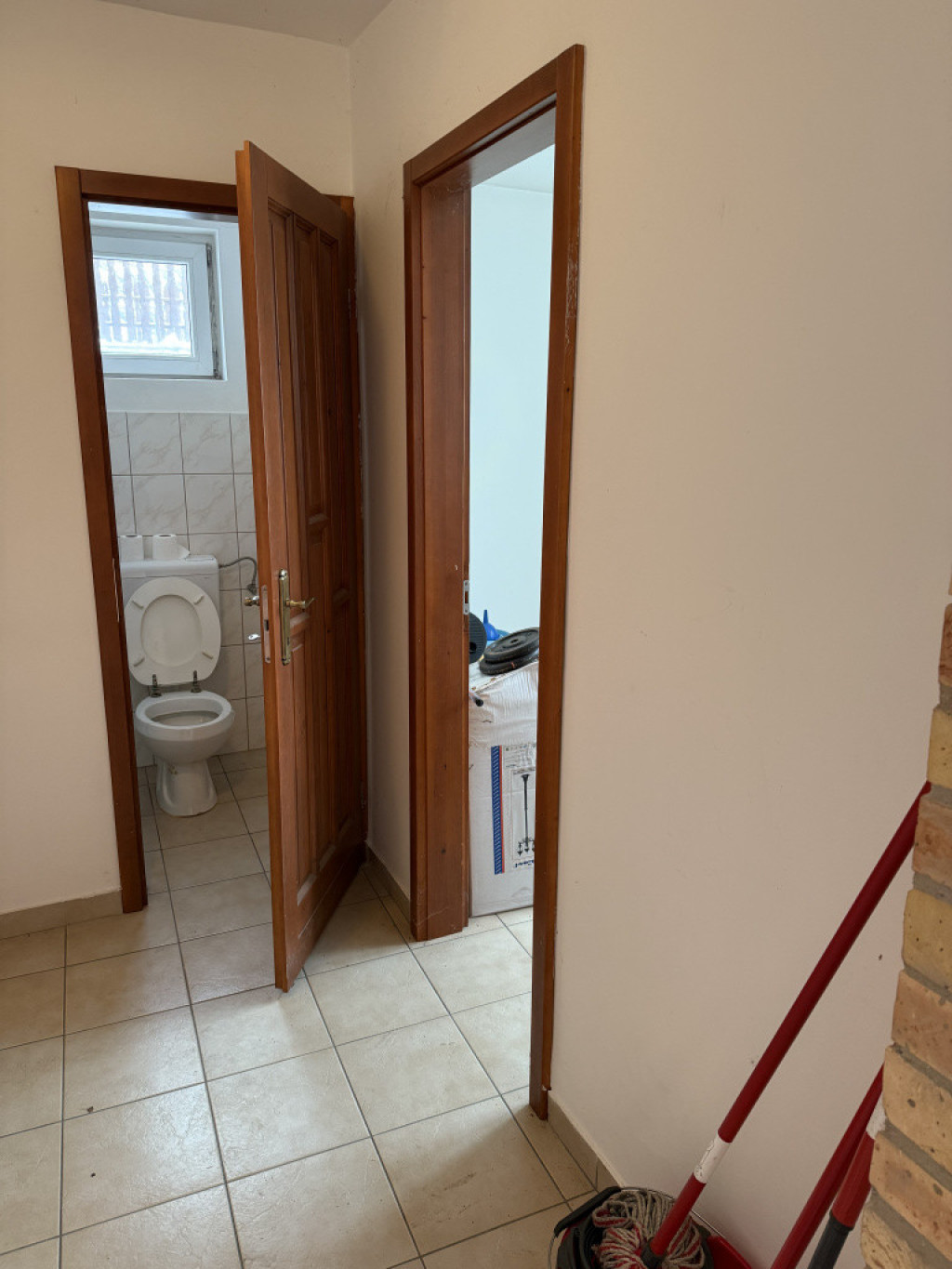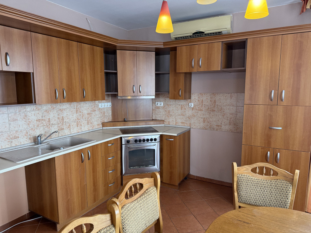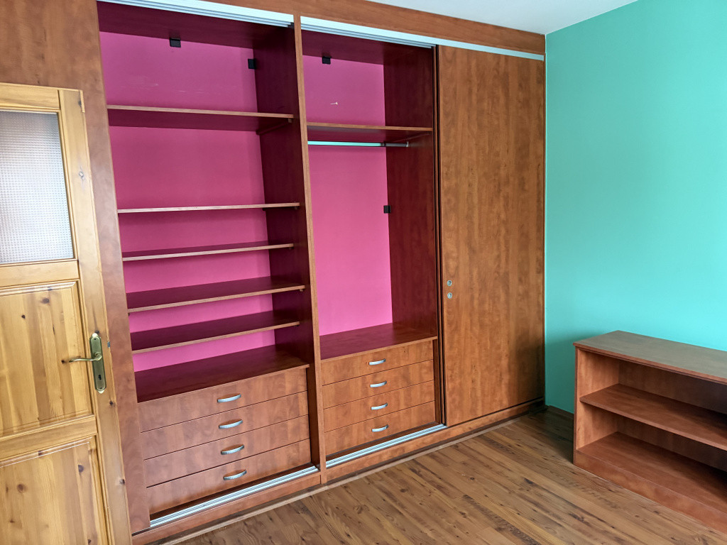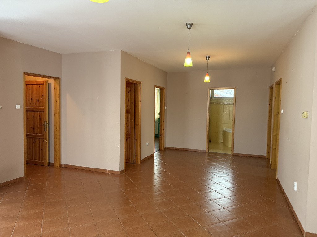 előtér,nappali-konyha -étkező,3 szoba beépített szekrényekkel,Wc,fürdőszoba zuhanyzóval és káddal.