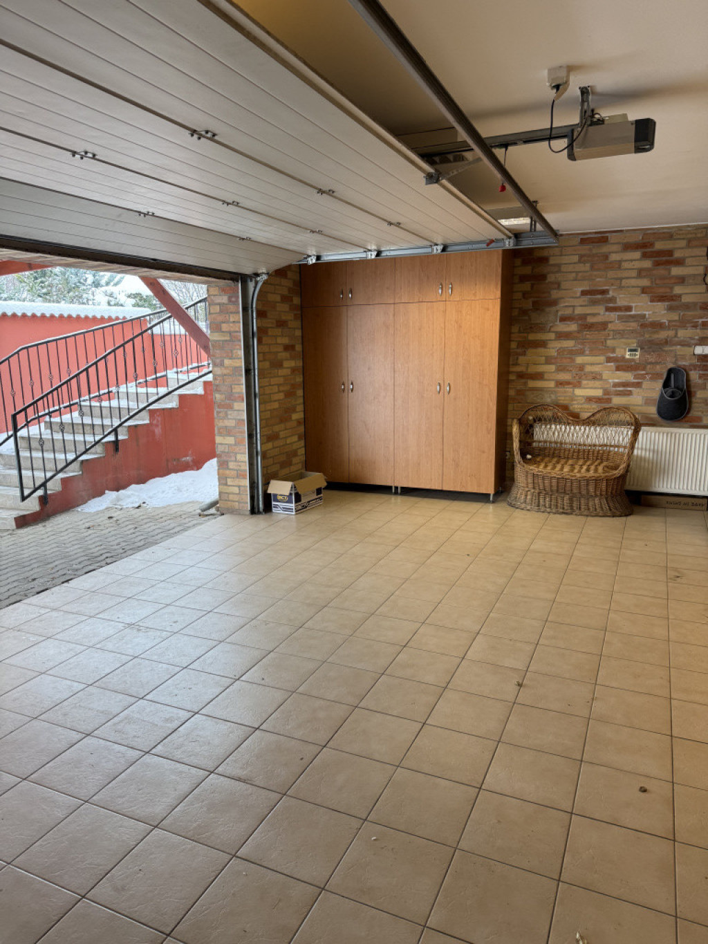 dupla garázs,kamra, mosókonyha szennyesledobóval , 2 tároló helyiség, borospince, szaunának kialakított helyiség zuhannyal.