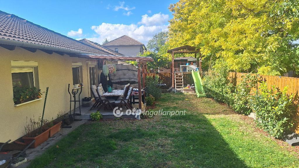 4 szobás, amerikai szuper konyhás,nappalis, dupla fürdőszobás, szép családi otthon 413 m2-es telekkel, két kocsibeállóval, kerti tárolóval,nagy fedett terasszal, kerti játszótérrel, sütögetővel. Újépítésü környezet,barátságos szomszédok!