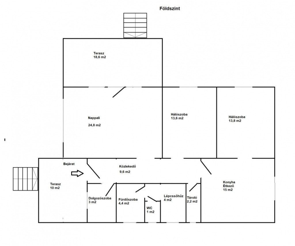 A 90 m²-es lakótér 280 cm-es belmagassággal tágas, levegős érzetet ad. A 25 m²-es nappaliból kilépve egy 16 m²-es teraszra jutunk, ahol reggeli kávé mellett hallani lehet a kert halk neszeit. A nagy étkezős konyha igazi találkozóhely: itt könnyű elképzelni a közös főzéseket, ünnepi vacsorákat. Két hálószoba és egy dolgozószoba teszi teljessé a szintet, utóbbi akár újra vizes helyiséggé alakítható.