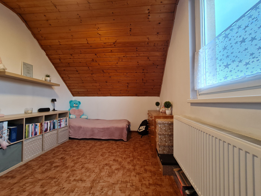 A tetőtér 80 m²-es lakótere kellemes belmagassággal rendelkezik. Három nagy hálószoba, egy külön gardrób, fürdőszoba és WC található itt - minden adott ahhoz, hogy a család minden tagja megtalálja a saját, csendes zugát.
