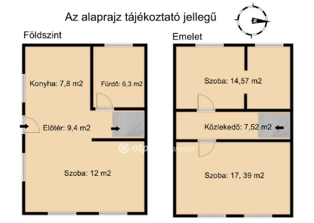 A jól átgondolt elosztásnak köszönhetően a földszinten egy konyha és tágas nappali található, míg az emeleten három hálószoba biztosítja a kényelmes családi életet.