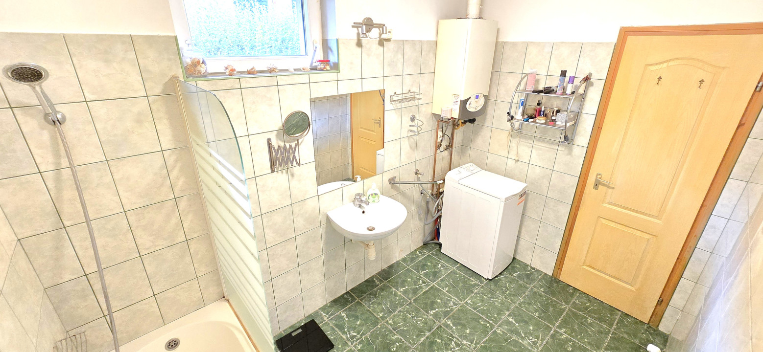 Fürdőszoba káddal, mosdókagylóval felszerelt (6,2 m2), valamint a közlekedőből nyílik egy külön helységben található wc.