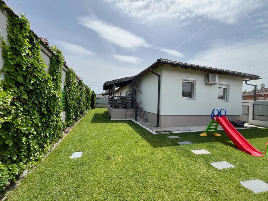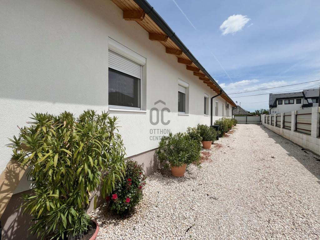 Az ingatlan, amelyet most bemutatunk Önnek, egy 2021-ben épült, kiváló állapotú ház, amely tökéletes otthont nyújt a családok számára. A 91,5 négyzetméteres alapterület és a 351 négyzetméteres telek ideális teret biztosít a kényelmes életvitelhez. Az ingatlanban négy tágas szoba található, amelyek világosak és barátságosak, így minden családtagnak megvan a saját helye. A modern fürdőszoba és a jól megtervezett tágas amerikai konyhás nappali a mindennapok kényelmét szolgálja, ahol a közös pillanatok igazán élvezetesek lehetnek. A ház fűtése kondenzációs kazánnal működik, amely gazdaságos és megbízható megoldást kínál, míg a klímaberendezés a nyári hónapokban biztosítja a kellemes hőmérsékletet. A kert rendezett és igényesen karbantartott, ahol egy jakuzzi is helyet kapott, ami a pihenés és a kikapcsolódás tökéletes színtere. A kerti tároló pedig praktikus megoldást nyújt a szerszámok és egyéb eszközök tárolására.