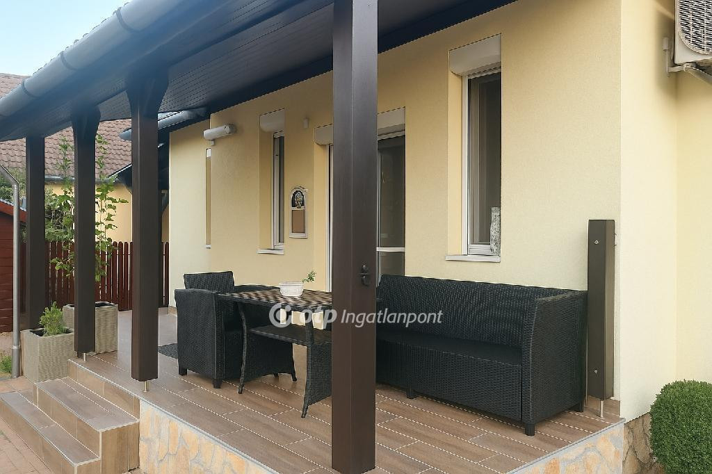A ház gáz-cirkó fűtésű, emellett légkondicionálóval és riasztórendszerrel ellátott. Az ingatlan összközműves, a kert gondozott és különálló, az udvarban pedig négy autó számára kényelmes parkolási lehetőség biztosított, részben fedett beállóval.