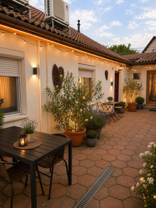 Kb. 30 m²-es udvar kiülővel – praktikus, jól használható tér a mindennapokra.