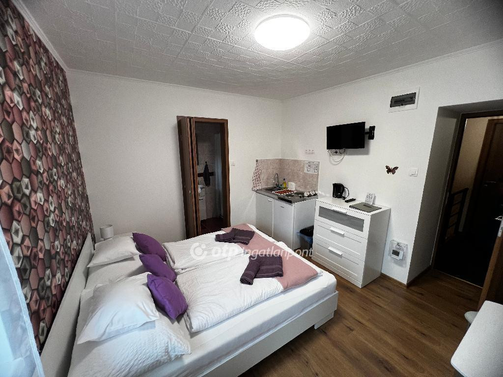 A tágas udvarban 5-6 gépkocsi számára kialakított parkolóhely áll rendelkezésre, továbbá az ingatlan előtt egy aszfaltos magánparkoló is a vendégek és a tulajdonos kényelmét szolgálja. Az ingatlan építészeti minősége, elhelyezkedése és igényes kivitelezése együttesen biztosítják, hogy a vendégház magas kihasználtsággal és stabil jövedelemmel működhessen.