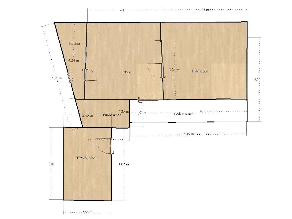 Az udvaron melléképület található, amelyből egy hangulatos, hűvös pince nyílik, amely a fürdőszoba alá nyúlik, így kiválóan alkalmas tárolásra, akár borospince kialakítására is.