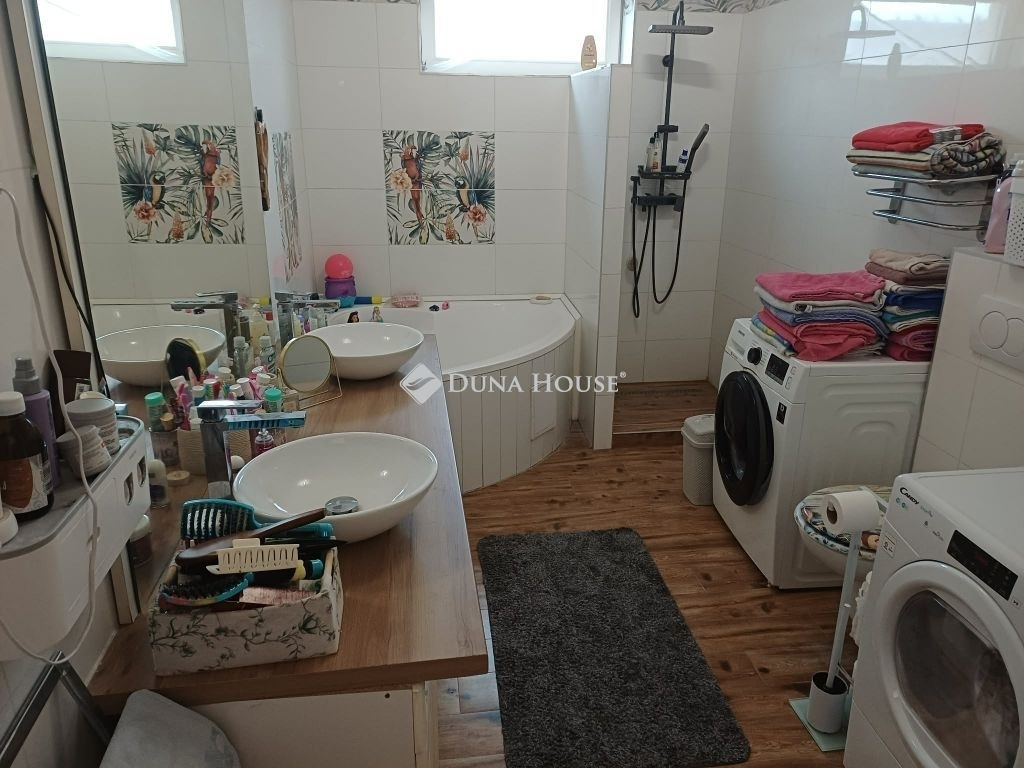 Szirmabesenyőben eladó egy minden igény kielégítő, és a mai trendnek megfelelő, igényesen felújított és szigetelt családi ház. Az épület mérete és az átalakítások nagycsaládosok számára ideális választássá teszik, de a vállalkozások számára is tökéletes lehetőség, ugyanis az alagsorban jelenleg egy nagy méretű iroda funkcionál. A földszinten egy világos, napfényes amerikai - konyhás nappali, 2 hálószoba, tágas fürdő és gardrób, míg a tetőtérben 3 hálószoba, konyha és fürdő került kialakításra. Az ingatlan főbb jellemzői: - 2023 teljeskörű felújítás, illetve belső átalakítás - új villany és vízvezetékek - fűtéskorszerűsítés - új műanyag nyílászárók - új beltéri ajtók és szaniterek - stílusos modern burkolatok - zsindelyes tetőborítás - garázs + fedett kocsibeálló A fedett terasz kiváló helyszín családi és baráti összejövetelekhez, ahol a nyugalom és a kikapcsolódás garantált. Az épület udvarra és tóra néző kilátással büszkélkedhet, ami nyugodt és zavartalan környezetet biztosít. További részletekért várom hívását. Szirmabesenyő egy varázslatos kis település, ahol a zöldövezetek és a nyugodt környezet ideális feltételeket biztosítanak a mindennapi élethez. A helyi közösség barátságos és segítőkész, így könnyedén beilleszkedhet az új lakók. Itt minden megtalálható, ami a kényelmes élethez szükséges, beleértve az üzleteket, oktatási intézményeket és egészségügyi szolgáltatásokat is. Az ingatlan Szirmabesenyőn remek befektetés azok számára, akik egy csendes, mégis jól megközelíthető helyen szeretnének élni, ahol a természet közelsége és a modern életvitel tökéletesen összhangban van.